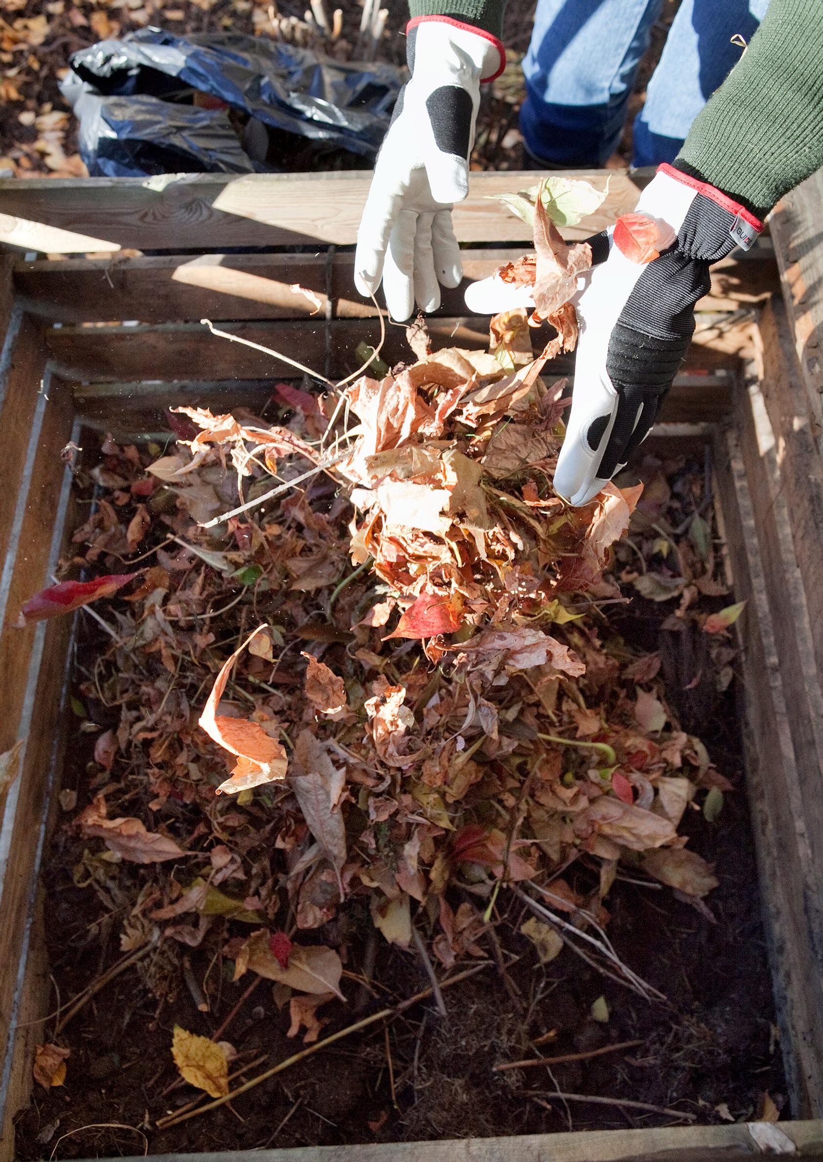 Ripottele lehtien päälle muutama lapiollinen multaa tai maatunutta kompostia. Mullan mukana kompostiin tulee pieneliöitä, ja lahoaminen nopeutuu.