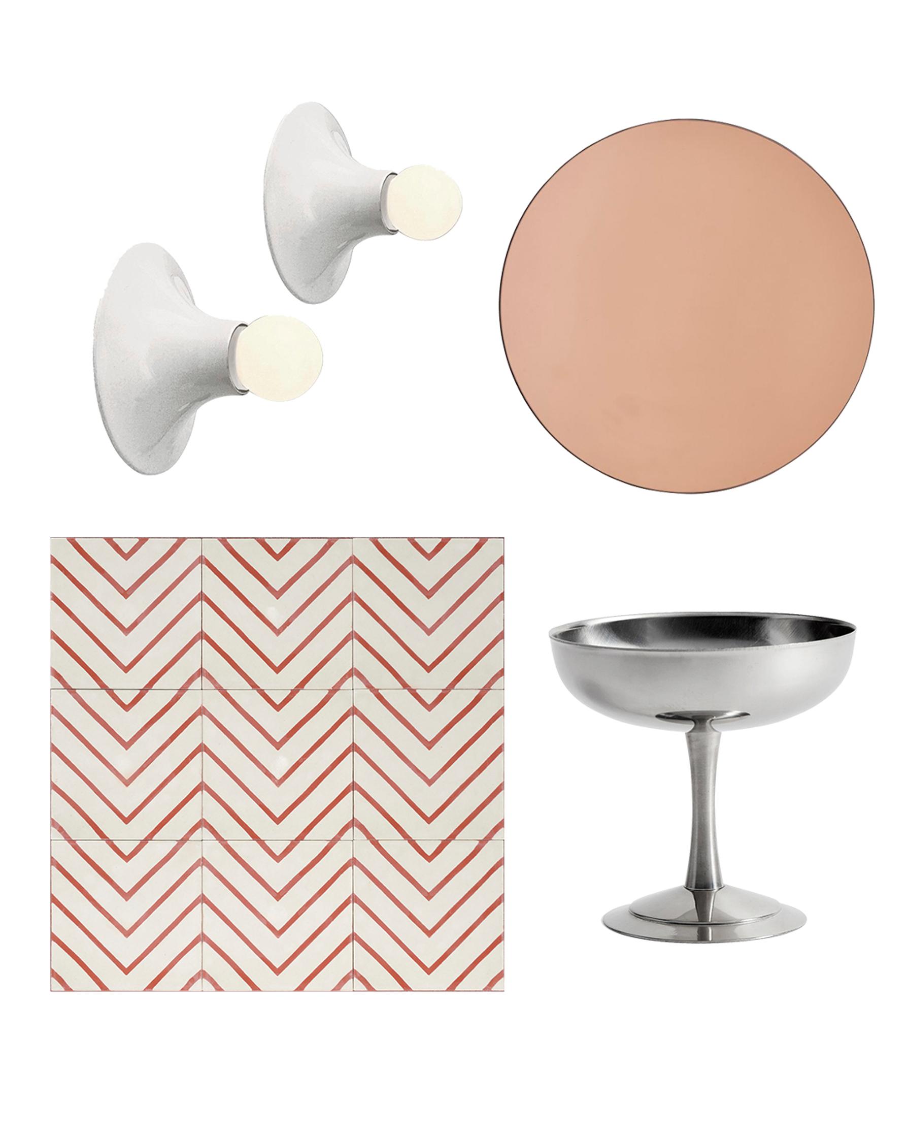 Artemiden 1970-luvulla suunniteltu Teti-valaisin kiinnittyy kattoon tai seinään. Sävytetyt peilit ovat nyt suosittuja. House Doctorin Walls-peili on sävytetty kauniin roosaksi. Marrakech Designin Mats Theseliuksen Kelim-malliston Goose eye -sementtilaattaa voi latoa monella tapaa. Hayn Italian Ice Cup -metallikulho herättää nostalgiaa.