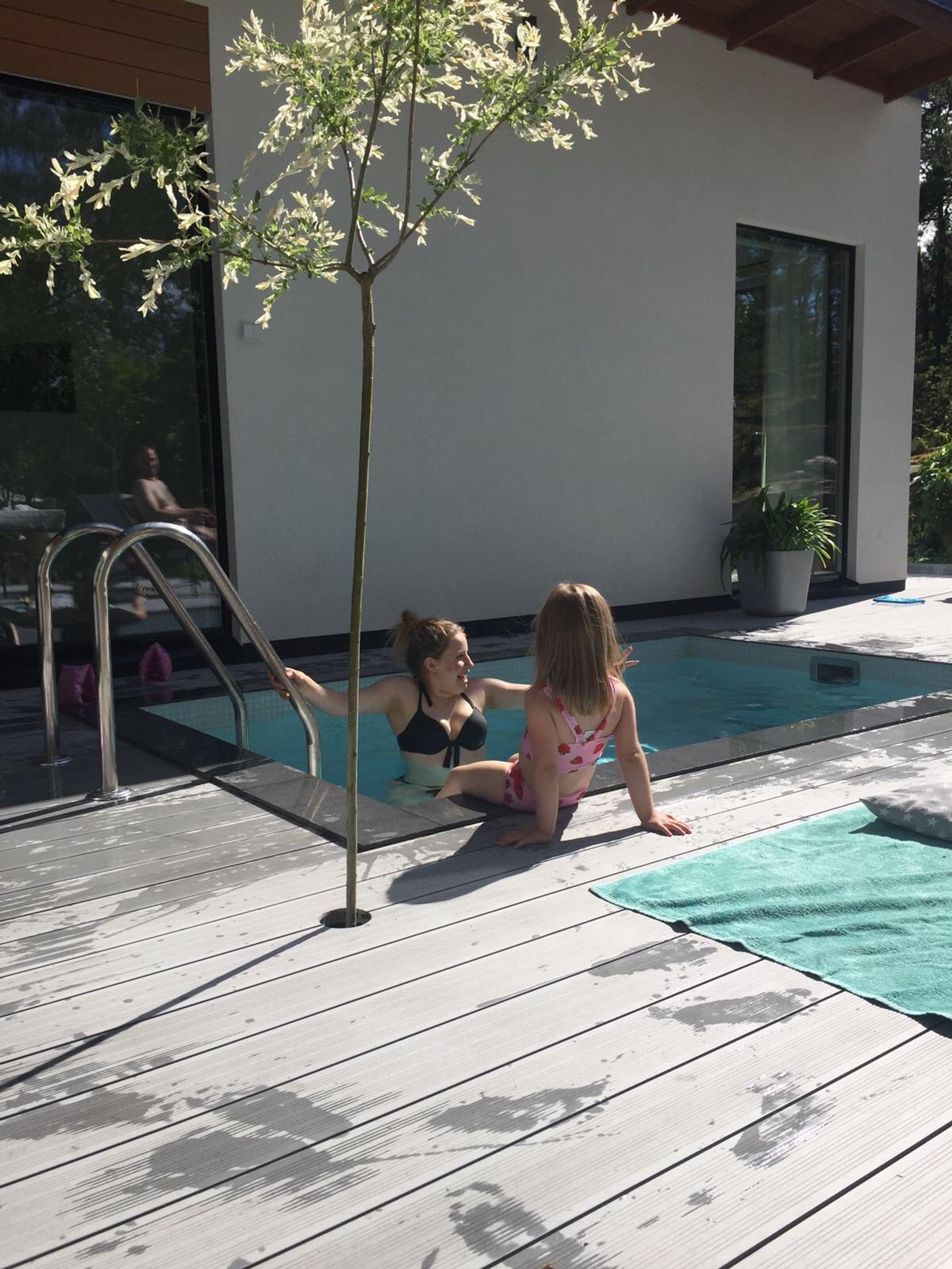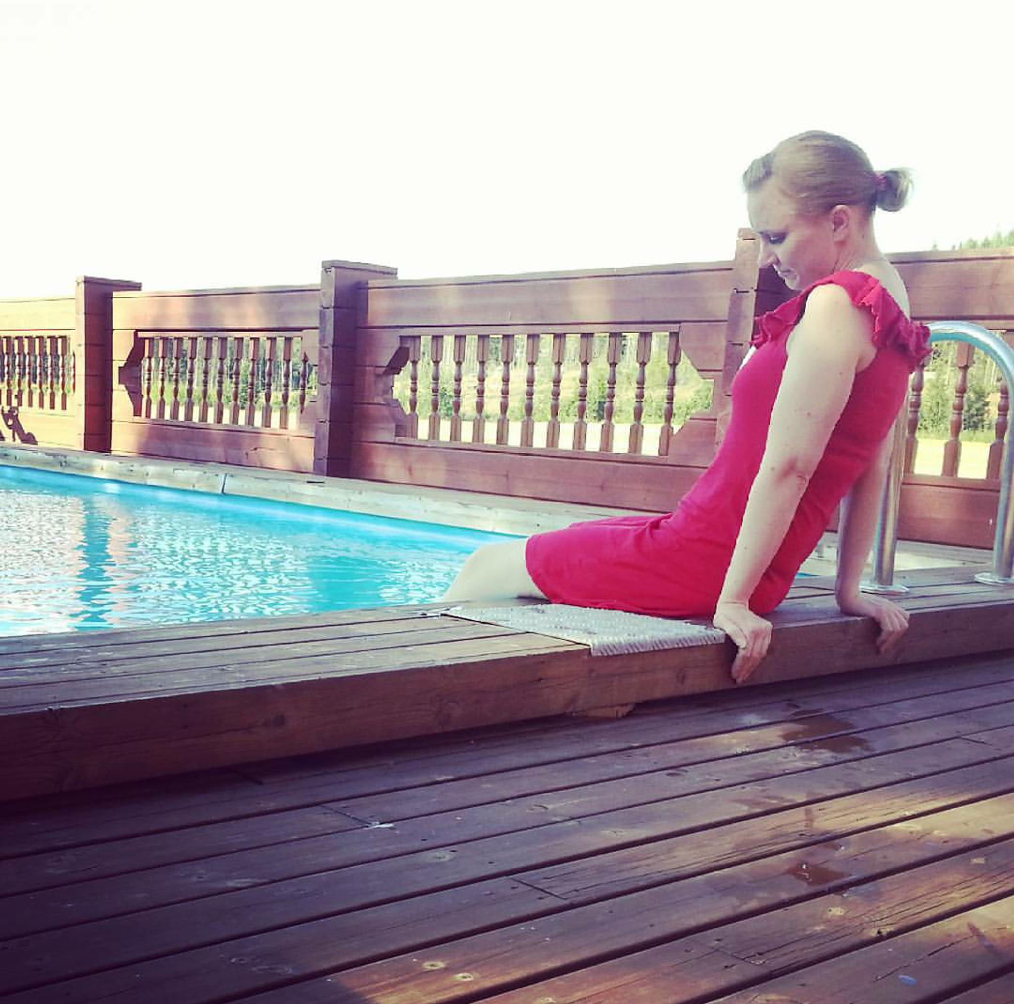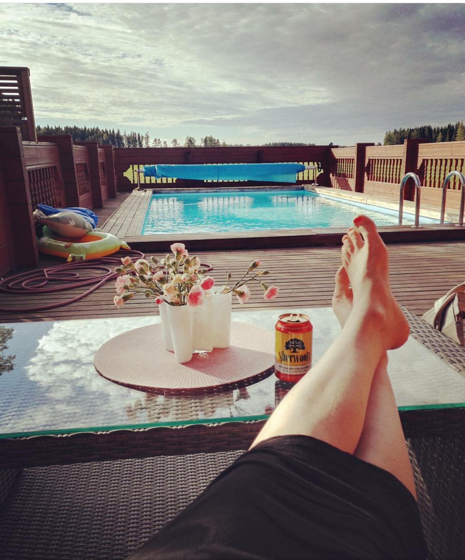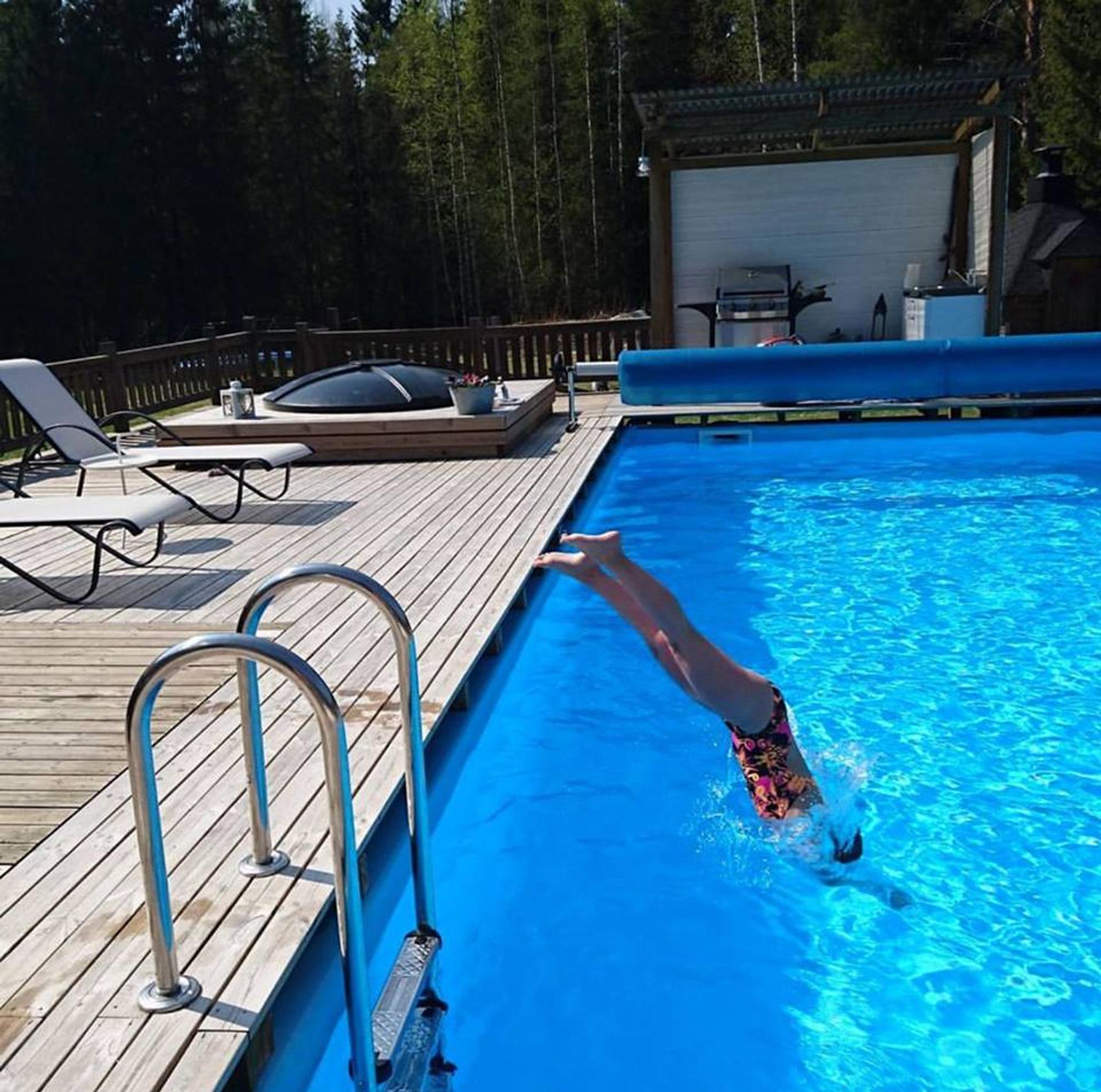 Rakastan aamu-uinteja ja kuutamouinteja. Näyttää ihanalta, kun allasvalot hohtavat kesäyössä. Päivisin on mahtavaa pulahtaa pihatöiden lomassa uinnille. Pidämme myös allasbileitä pitkin kesää. Uima-allas on kotimme sydän. Sinne pitäisi ehdottomasti asettaa punainen matto!