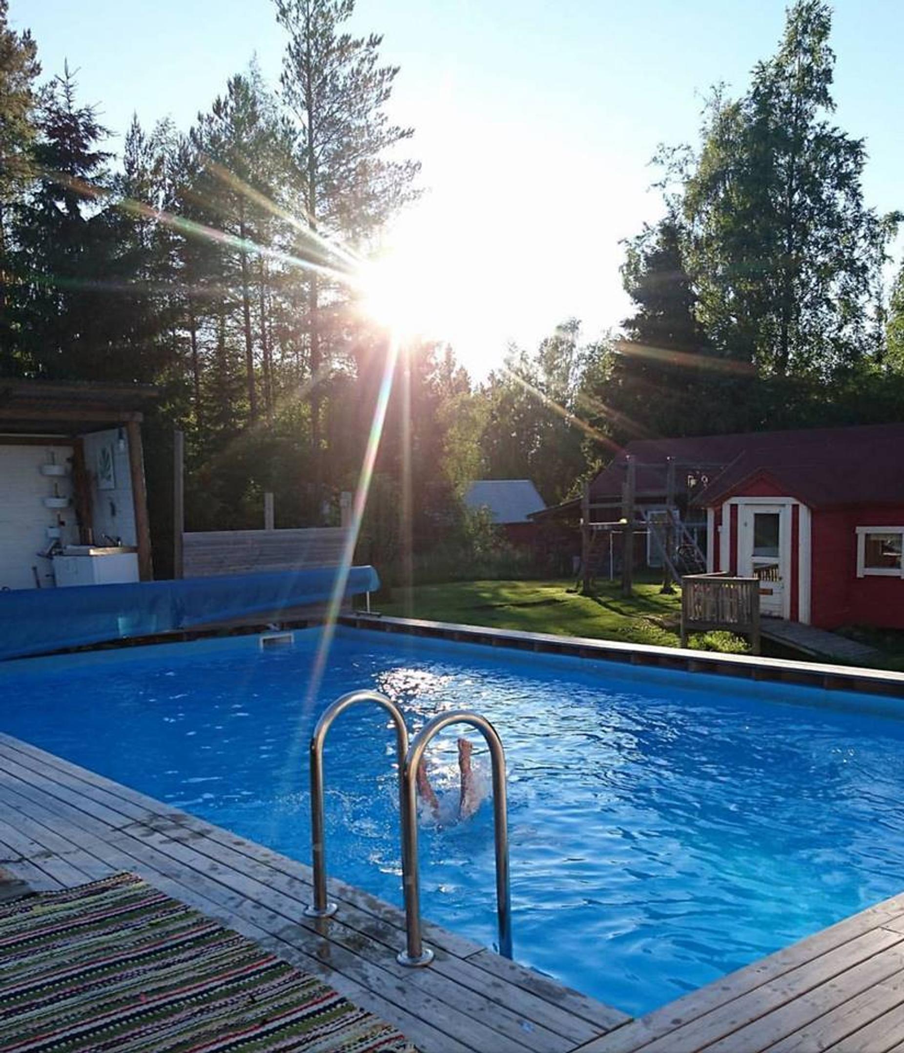 Kesäisin uima-allas on käytössä päivittäin. Meidän vanhempien lisäksi allasta käyttävät 10–15-vuotiaat lapsemme. Välillä järjestämme ystävillemme ja sukulaisillemme grillausiltoja ja allaspippaloita.