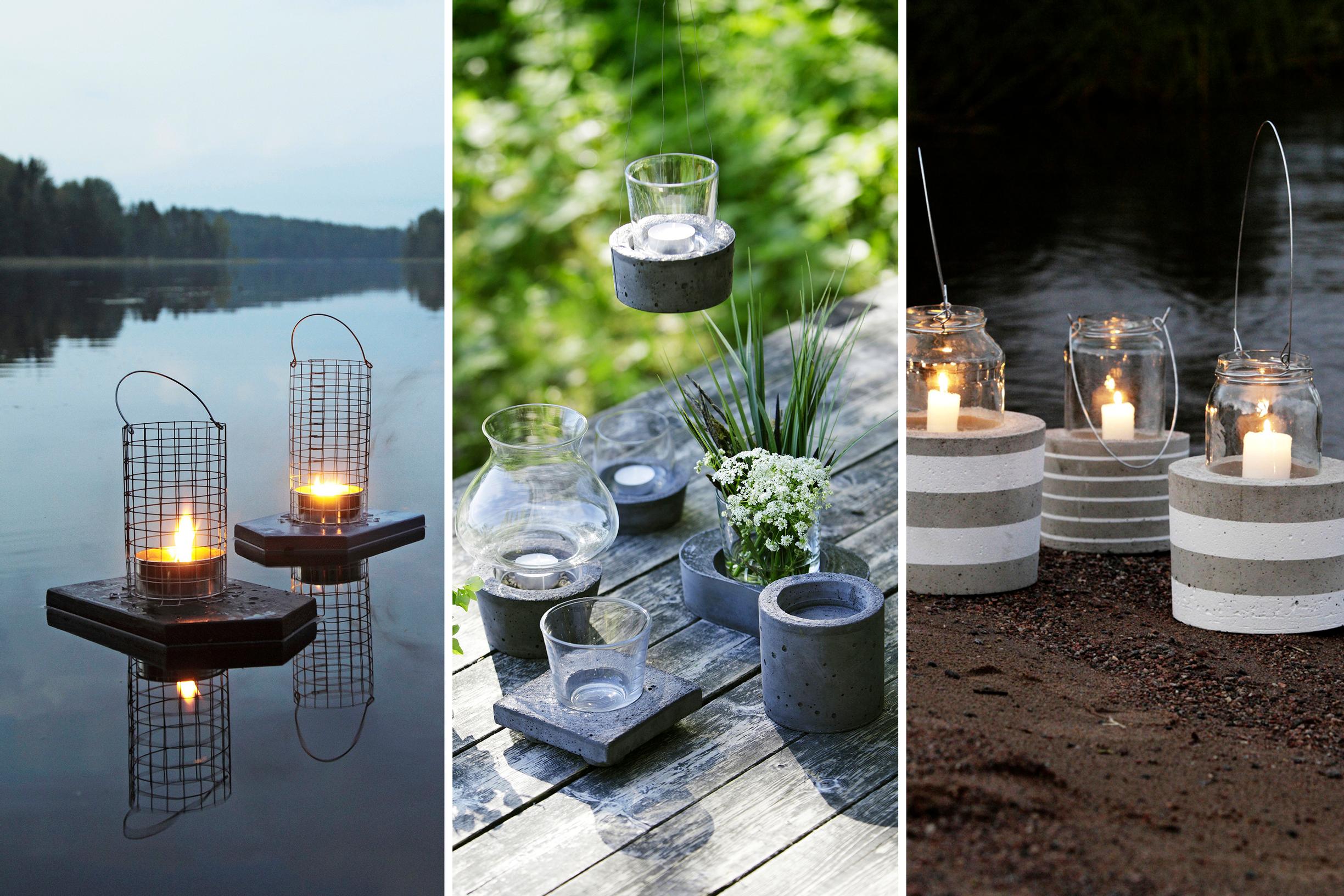 Betonista tehdyt lyhdyt näyttävät kauniilta pihalla tai mökkirannalla. Tukevat lyhdyt eivät horju kovallakaan tuulella tai epätasaisella alustalla. Yhdestä betonisäkistä valmistuu ainakin puoli tusinaa lyhtyjä. Betonista valettujen lyhtyjen ohjeen saat täältä.