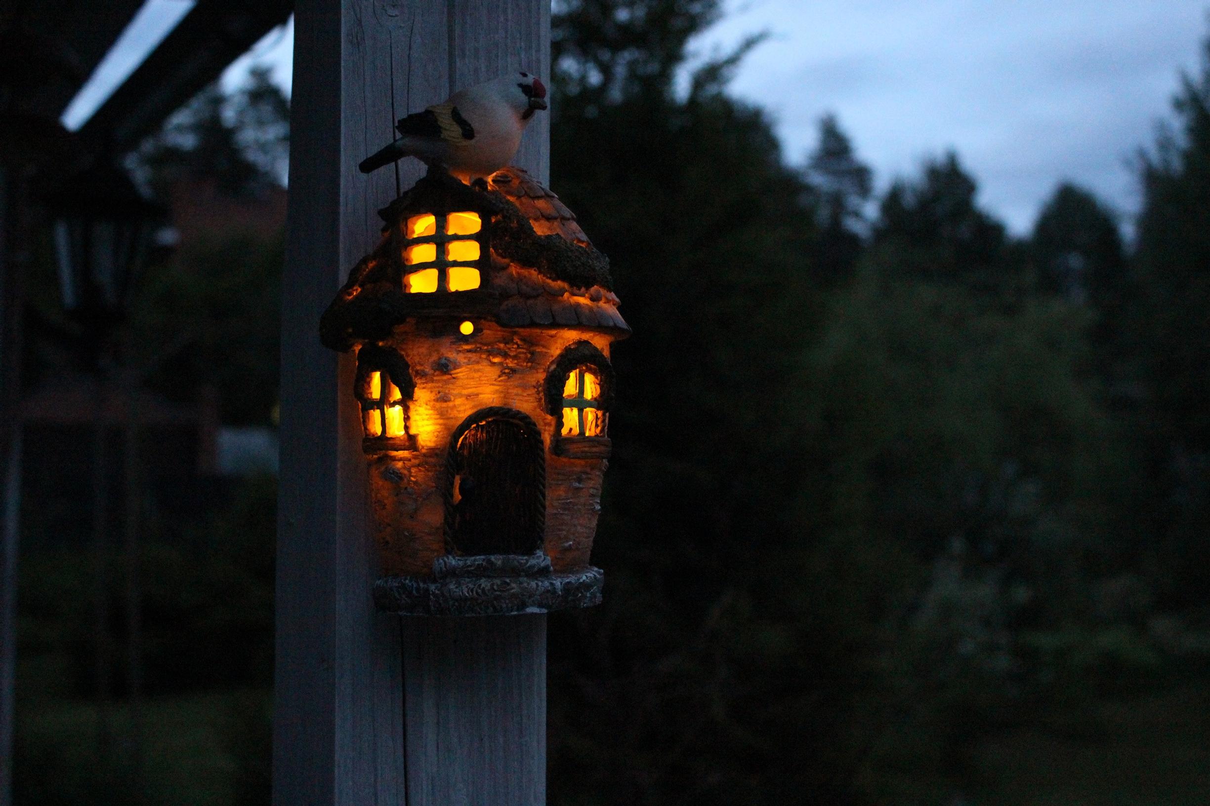 Askartele pihallesi keijun mökki ja laita sisälle pari patterikäyttöistä led-valoa. Siinäpä suloinen valaisin, jota ei naapureilla takuulla ole!
