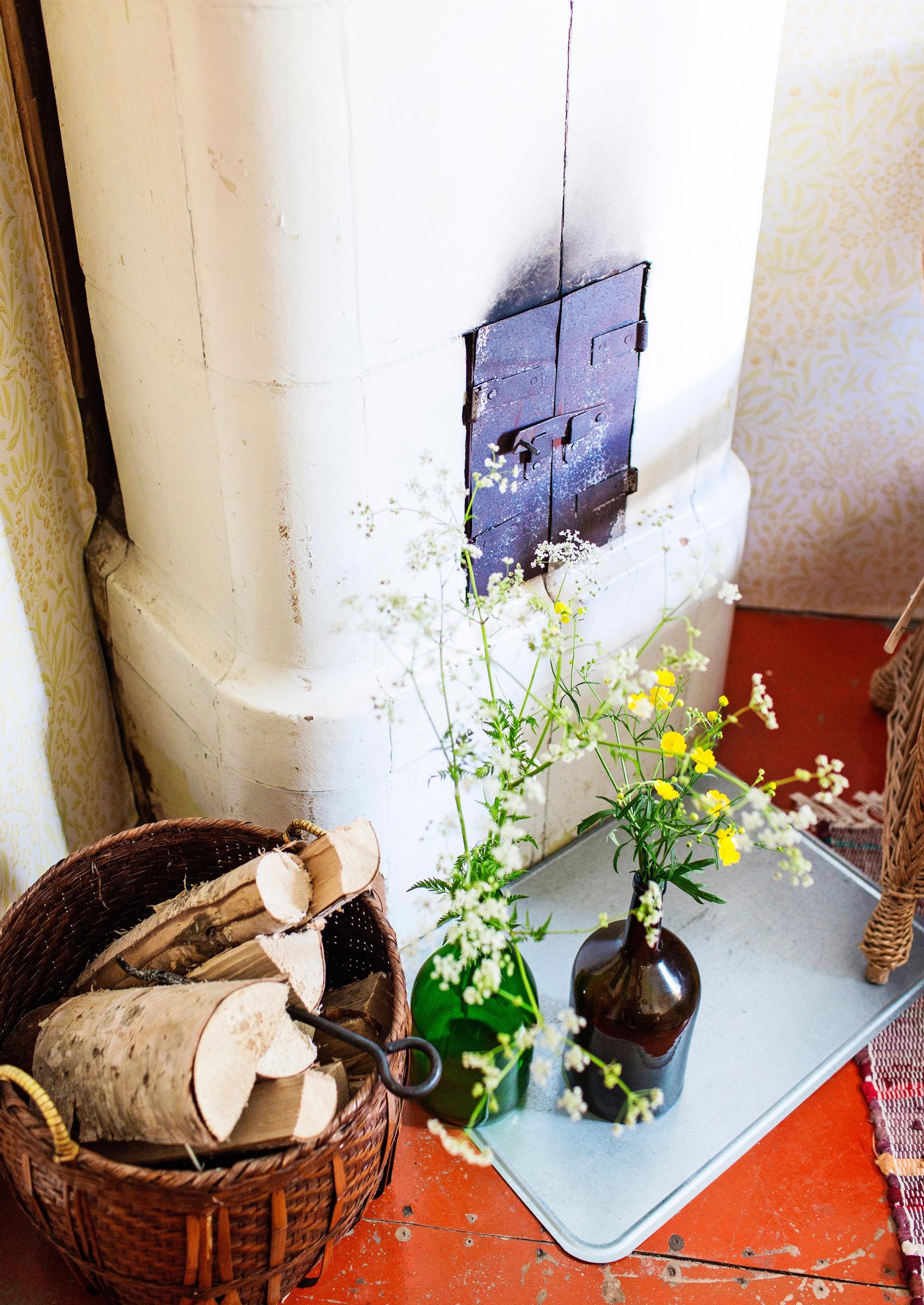 Kahvipannu porisee iloisesti keittiön kaasuhellalla. Juokseva vesi ei kuulu torpan henkeen. Juomavettä pariskunta säilyttää vanhan pesupöydän päällä.
