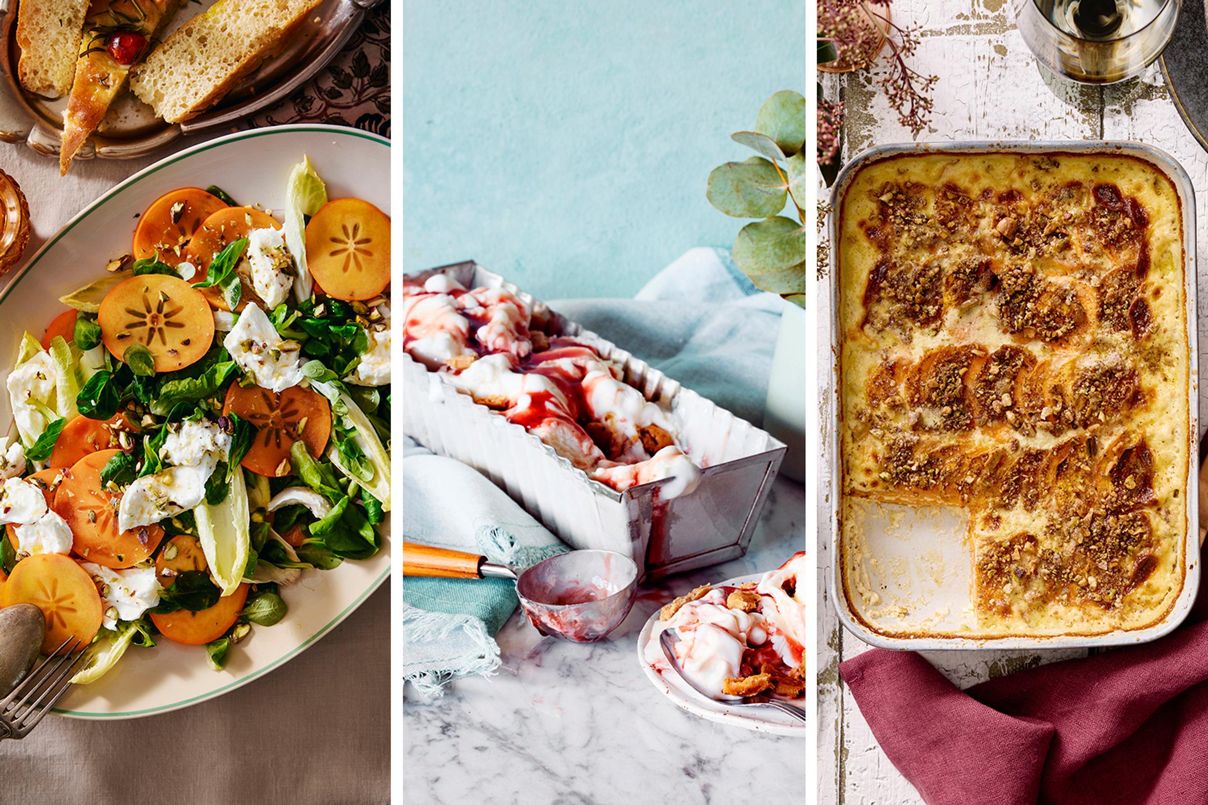 ”Joulupöydässämme on joka vuosi tutut, perinteisillä resepteillä tehdyt laatikot ja muut vakiovieraat. Jotakin uutta on kuitenkin myös kiva aina kokeilla, ja usein se tarkoittaa joko jälkiruokaa tai salaattia. Nyt innostuin tästä persimon-buffalasalaatista. Se yhdistää makean mehukkaan persimonin, juuston ja rapeat pistaasipähkinät. Kirpeä mandariinivinegretti sitoo maut yhteen. Kuulostaa täydellisen helpolta salaatilta, joka maistuu todennäköisesti myös jopa lapsille!” -Johanna Sjöholm, toimituspäällikkö