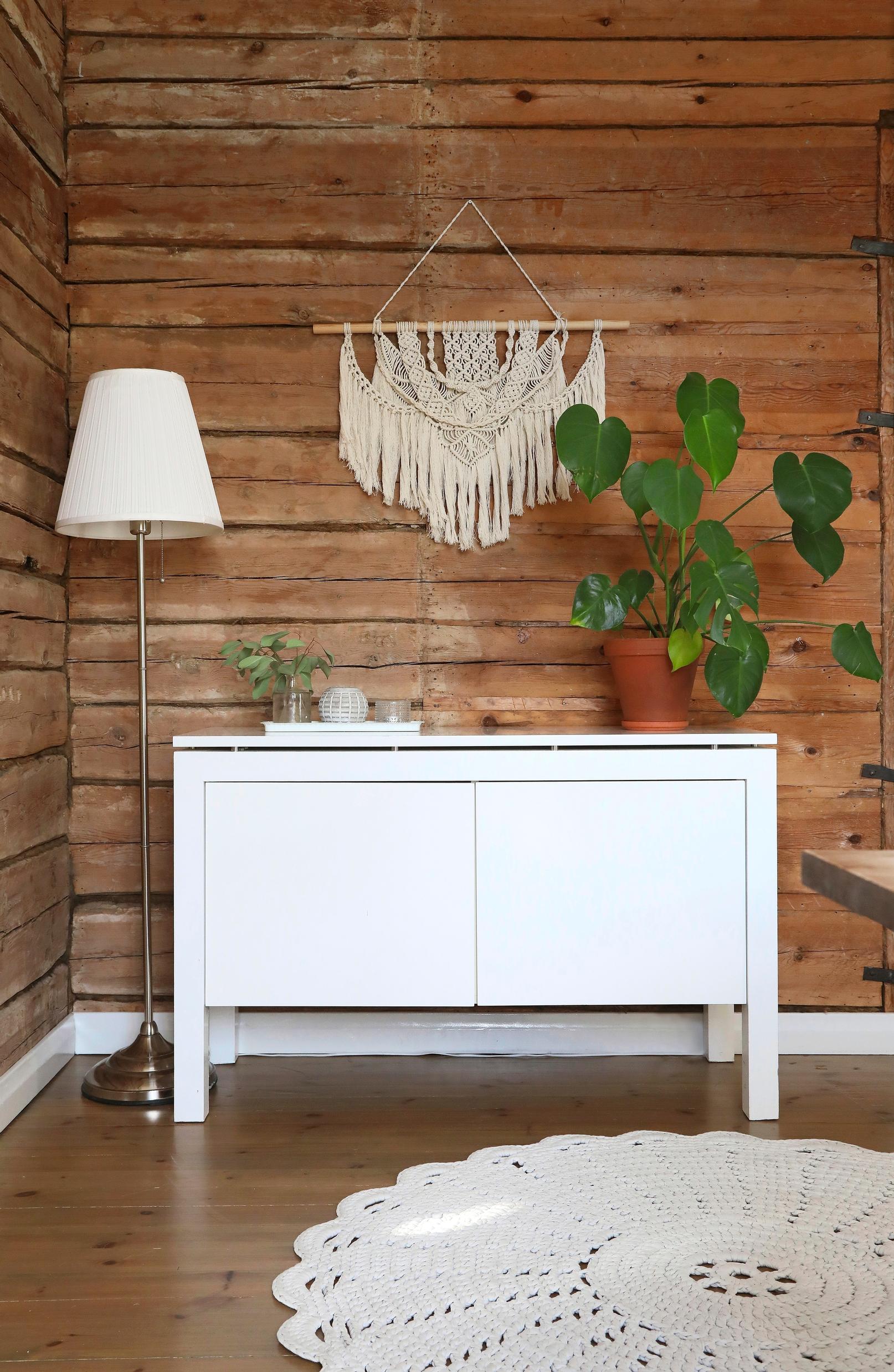 - Vaali valoa. Tummat hirsiseinät imevät valoa, joten ne kaipaavat kaverikseen vaaleita pintoja.