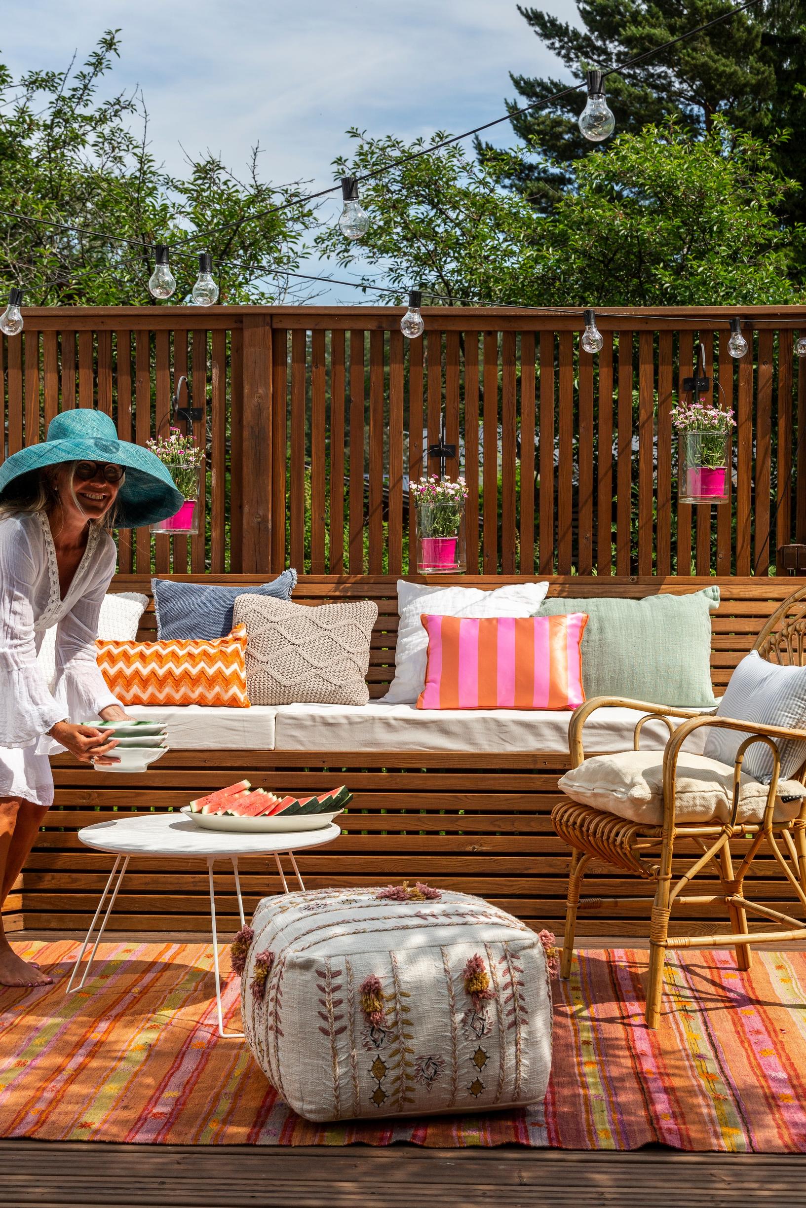 Carola ei tyytynyt sisäremonttiin, vaan myös talon ulkokuori on saanut uuden ilmeen. Salaojat oli ehdottomasti tehtävä ja vanhat betonirappuset räjäytettävä pois. Tilalle rakennettiin kaunis, iso puuterassi.