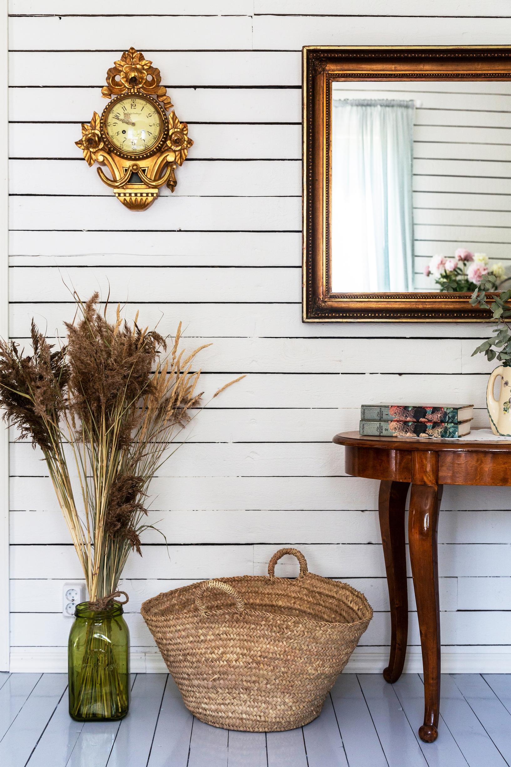 – Talo täyttää kaikki unelmani. Sisustuksessa en tekisi mitään toisin. Oli mukavaa, että pystyin hyödyntämään joitain talossa olleita vanhoja tavaroita. Entinen kukkalaatikko on nyt polttopuiden säilö.
