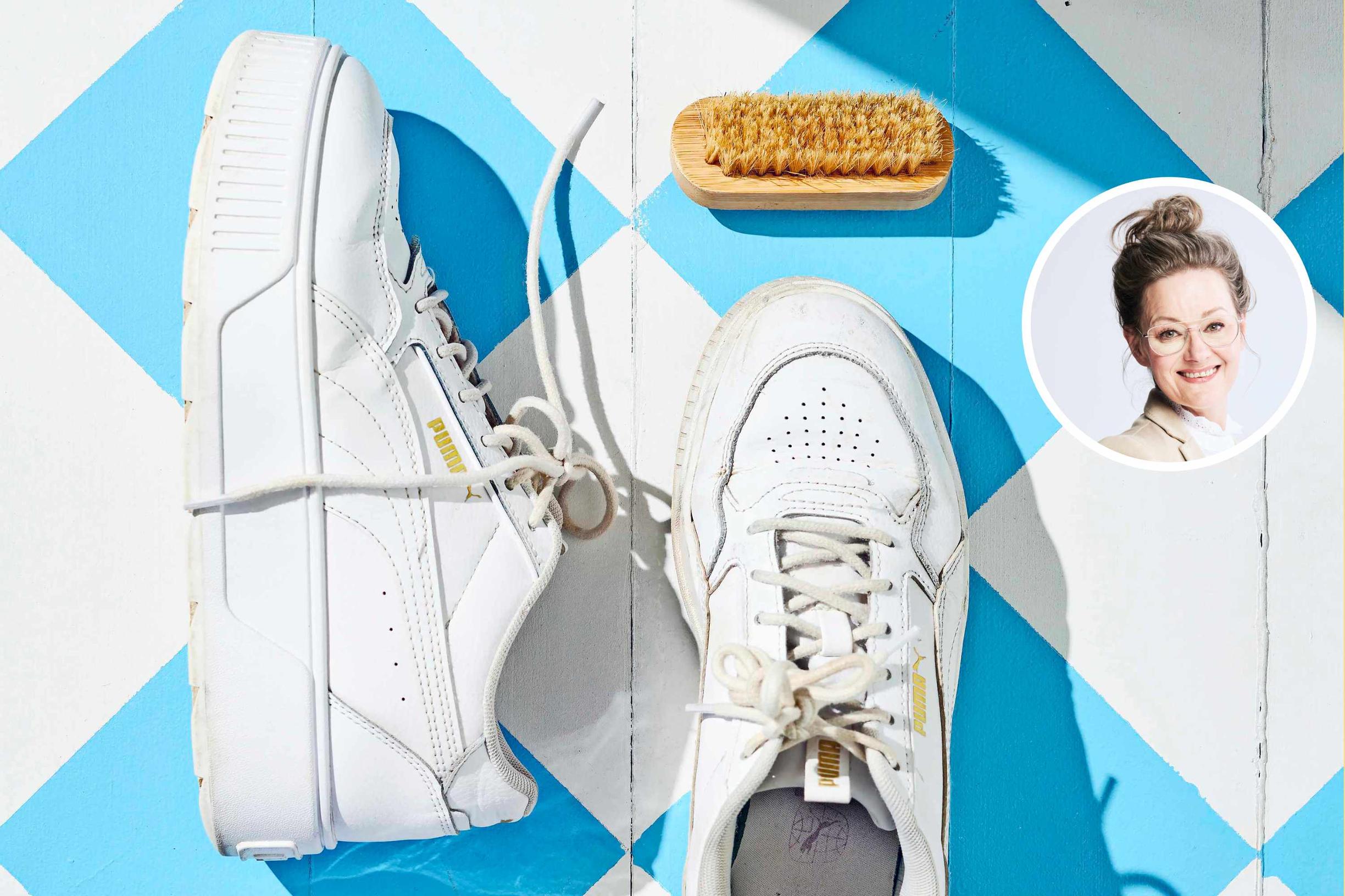 Kiire ja valkoiset tennarit näyttävät nuhjuisilta? Yllättävä apu lenkkareiden puhdistukseen löytyy kylpyhuoneesta, tuottaja Natalia Rehbinder vinkkaa.
