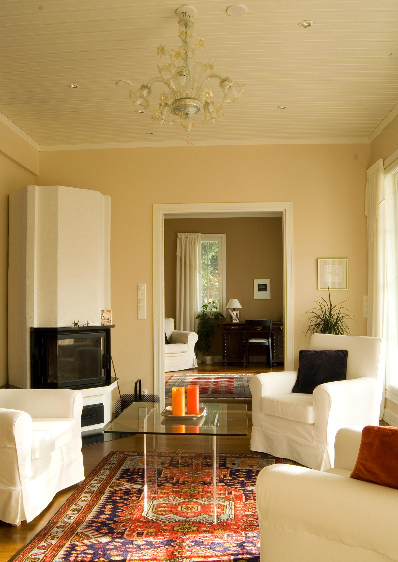 – Ihastuimme Auroraan, sillä kartanomainen, kaksikerroksinen puutalo pilareineen ja parvekkeineen sopii meistä hyvin Tuusulan vanhaan kulttuurimaisemaan. Meitä miellyttivät myös sisätilojen dekoratiiviset, leveät jalka- ja kattolistat sekä muut viimeistellyt yksityiskohdat. Pääsimme itse suunnittelemaan kotiamme, mutta toki ammattiapuakin tarvittiin. Sitä saimme tutulta arkkitehdiltä, Matias Sarimo kertoo.