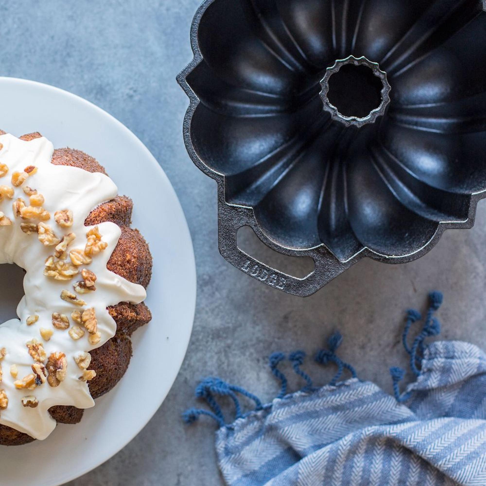 Lodge Cast Ironin valurautainen kakkuvuoka sopii muidenkin jouluisten ja erityisesti tummien kuivakakkujen paistamiseen. Valurauta ruskistaa kakun pinnan kauniisti.