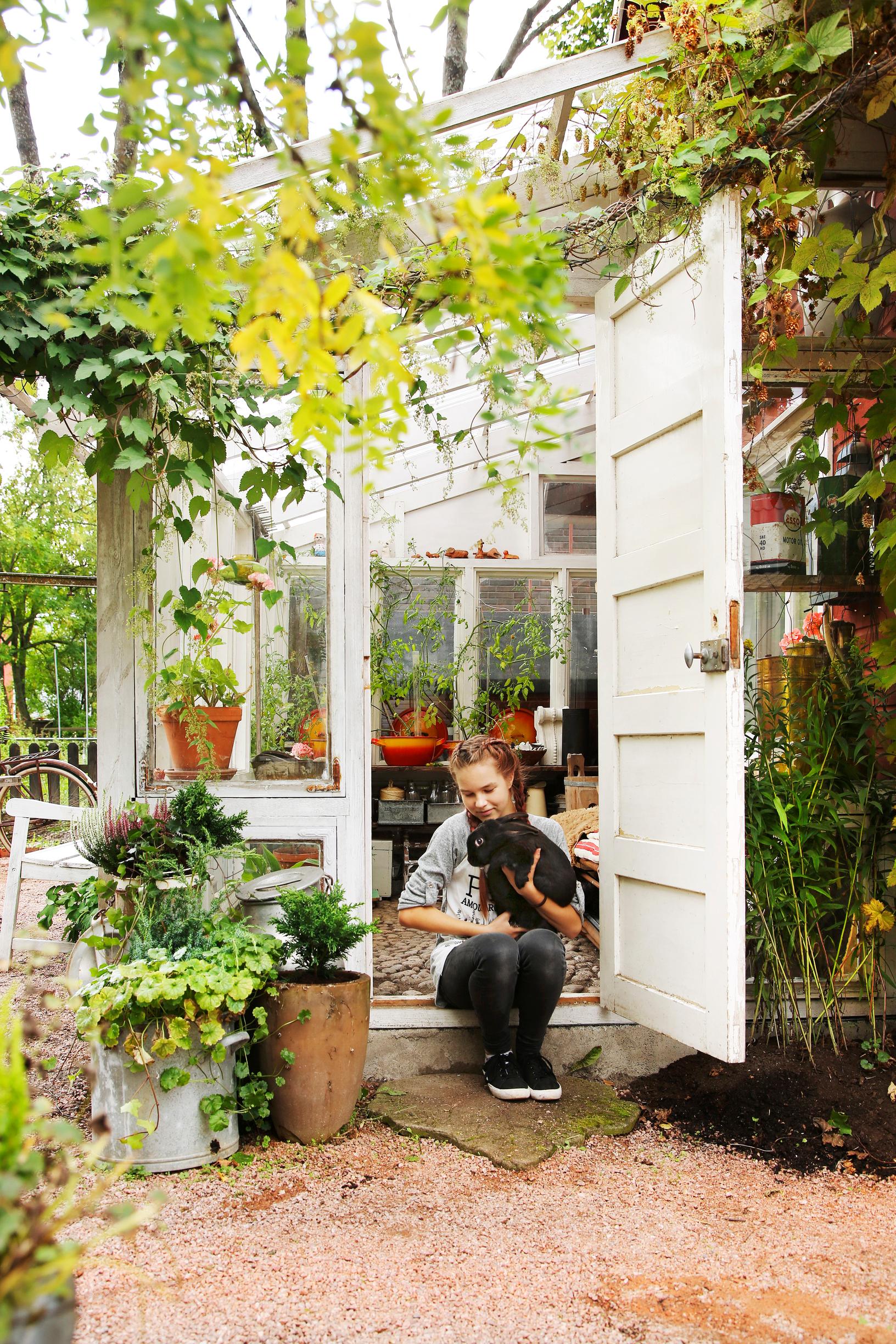 Sormien upottaminen multaan ja yrttipenkeissä möyriminen ovat sopivaa vastapainoa taiteilulle ja opettamistyölle. Se on konkreettista, hyvää mielen tyhjennystä. Aluksi piha oli sepelillä. Kun lapset olivat pieniä, piti olla hiekkalaatikkoja ja trampoliineja. Nyt on tullut minun vuoroni.