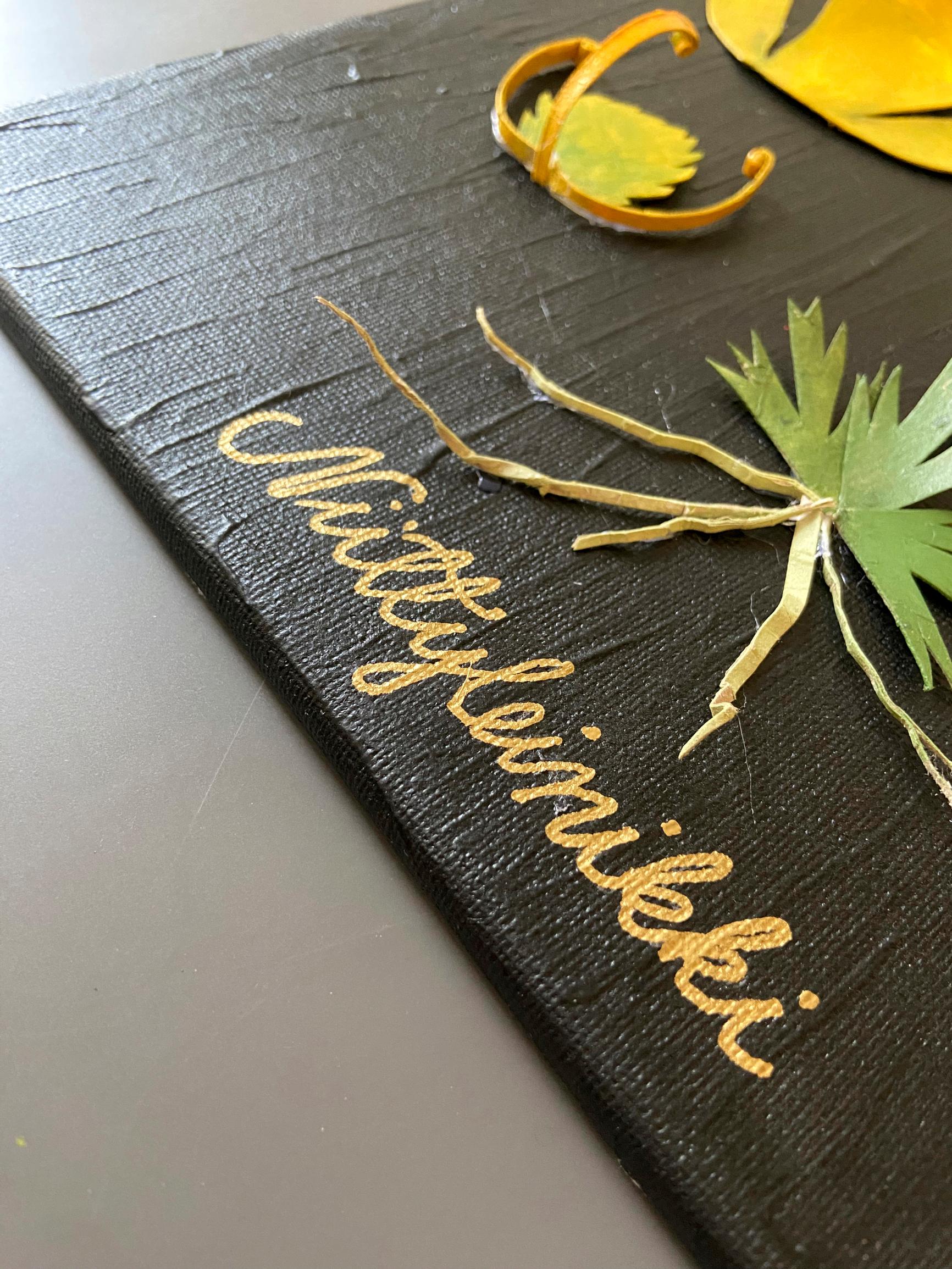5. Nimikoi kasvitaulu kaunokirjoituksella. Tee luonnos lyijykynällä, korjaa tarvittaessa ja kirjoita maalitussilla päälle. Metallinhohtoinen kynä antaa tyylikkään viimeisen silauksen.