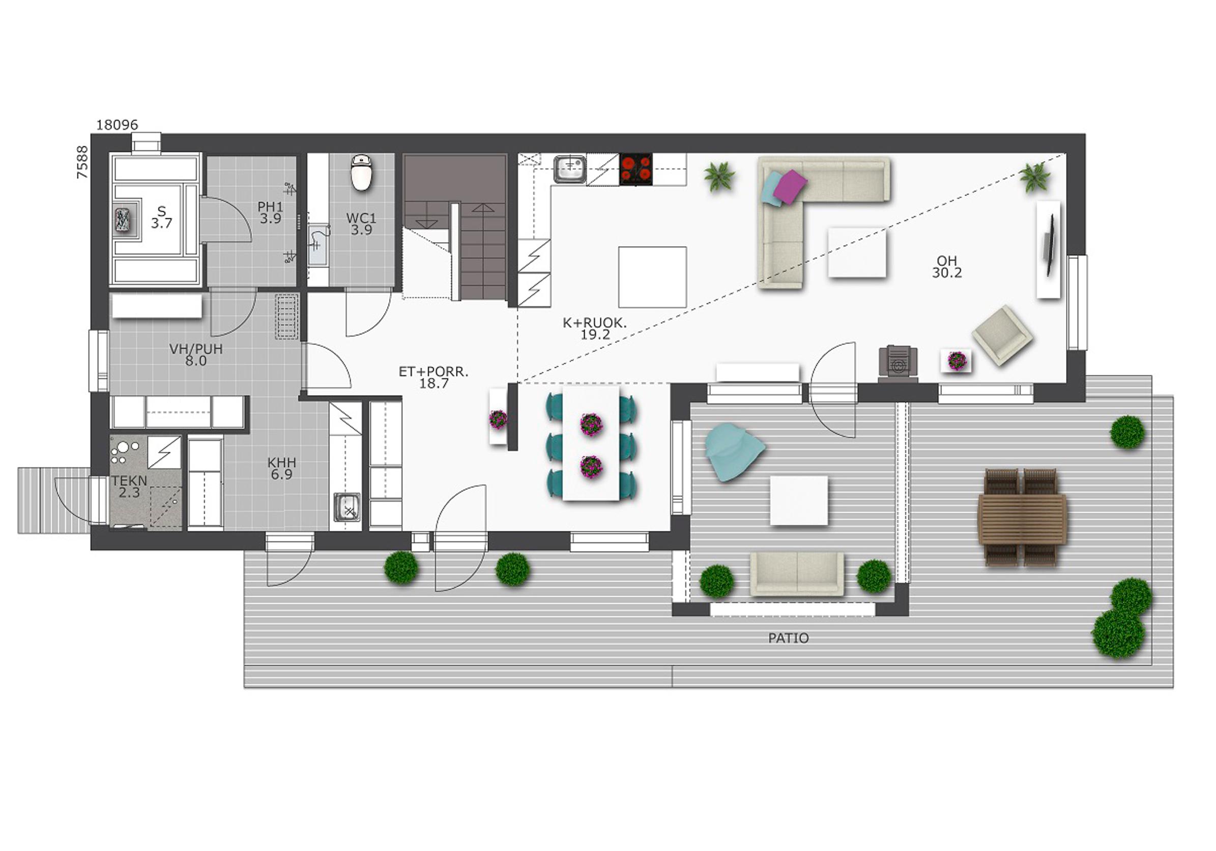 4 h + k + rt + khh + harrastetila + s 99, 99 m²