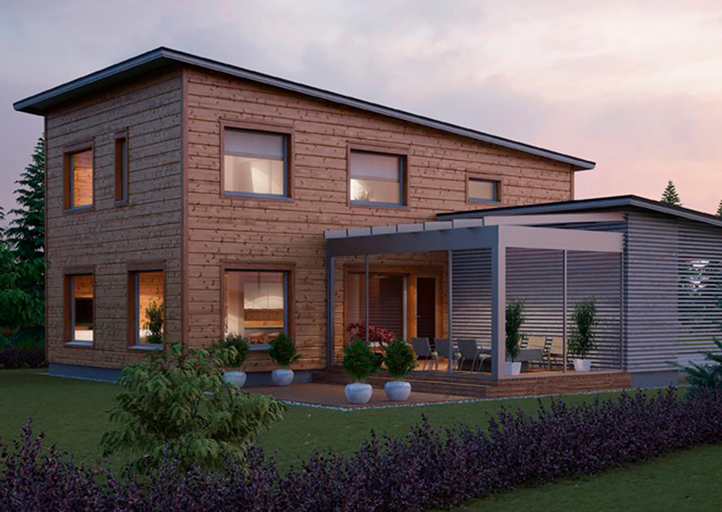 Näytteilleasettaja: Honkarakenne Arkkitehti: Jaakko ja Elizaveta Parkkonen Energialuokka: B E-luku: 123 Arvioitu lämmitysenergiankulutus (kWh/vuosi): 8 711 Runkomateriaali: puu, lamellihirsi (Honka FXL 134) Lämmitysjärjestelmä: Aurinko/puulämmitys -hybridivaraajalla, vesikiertotakka