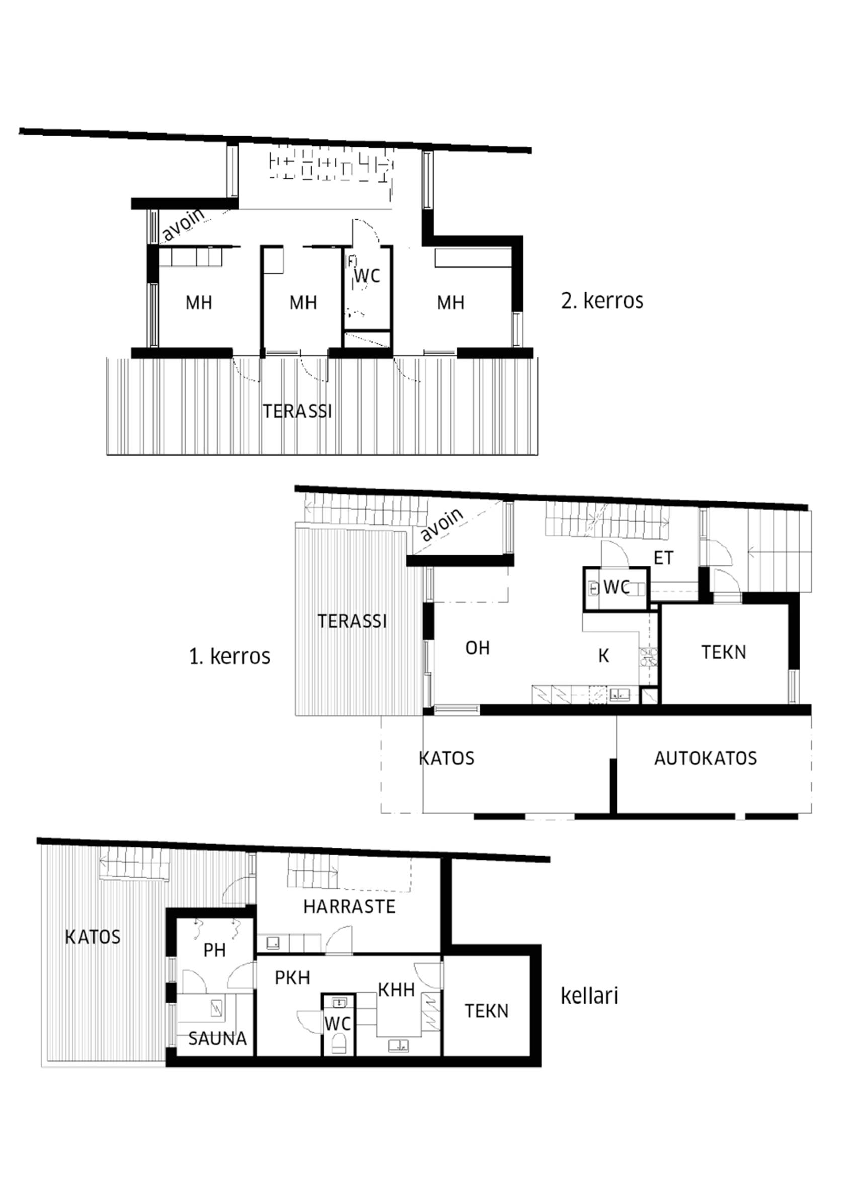 Erityistä: Japanilaisvivahteinen skandinaavisen linjakas puutalo on ulkoapäin pieni, mutta sisätiloiltaan iso. Julkisivuissa on leikitelty muodoilla ja ikkunoiden sijoittelulla. Moni-ilmeisyys jatkuu myös talon sisätiloissa: välipohjan porrastus rytmittää ja yläkerran vino sisäkatto avartaa tiloja. Nykypäivän vaatimukset täyttävässä hirsirunkoisessa talossa aidot materiaalit, hyvä akustiikka, terveellinen sisäilma ja tämän päivän talotekniikka kohtaavat viihtyisissä ja kodikkaissa puitteissa.