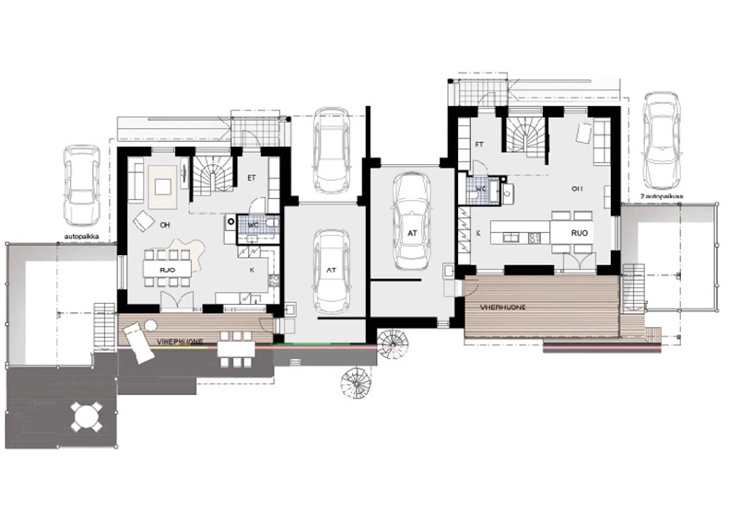 Näytteilleasettaja: Potius, 010 231 1580 Arkkitehti: Tuomas Niemi Energialuokka: B E-luku: 101 Arvioitu lämmitysenergiankulutus (kWh/vuosi): 17 600 molemmat asunnot yhteensä Runkomateriaali: kivi, betonielementti Lämmitysjärjestelmä: Maalämpö