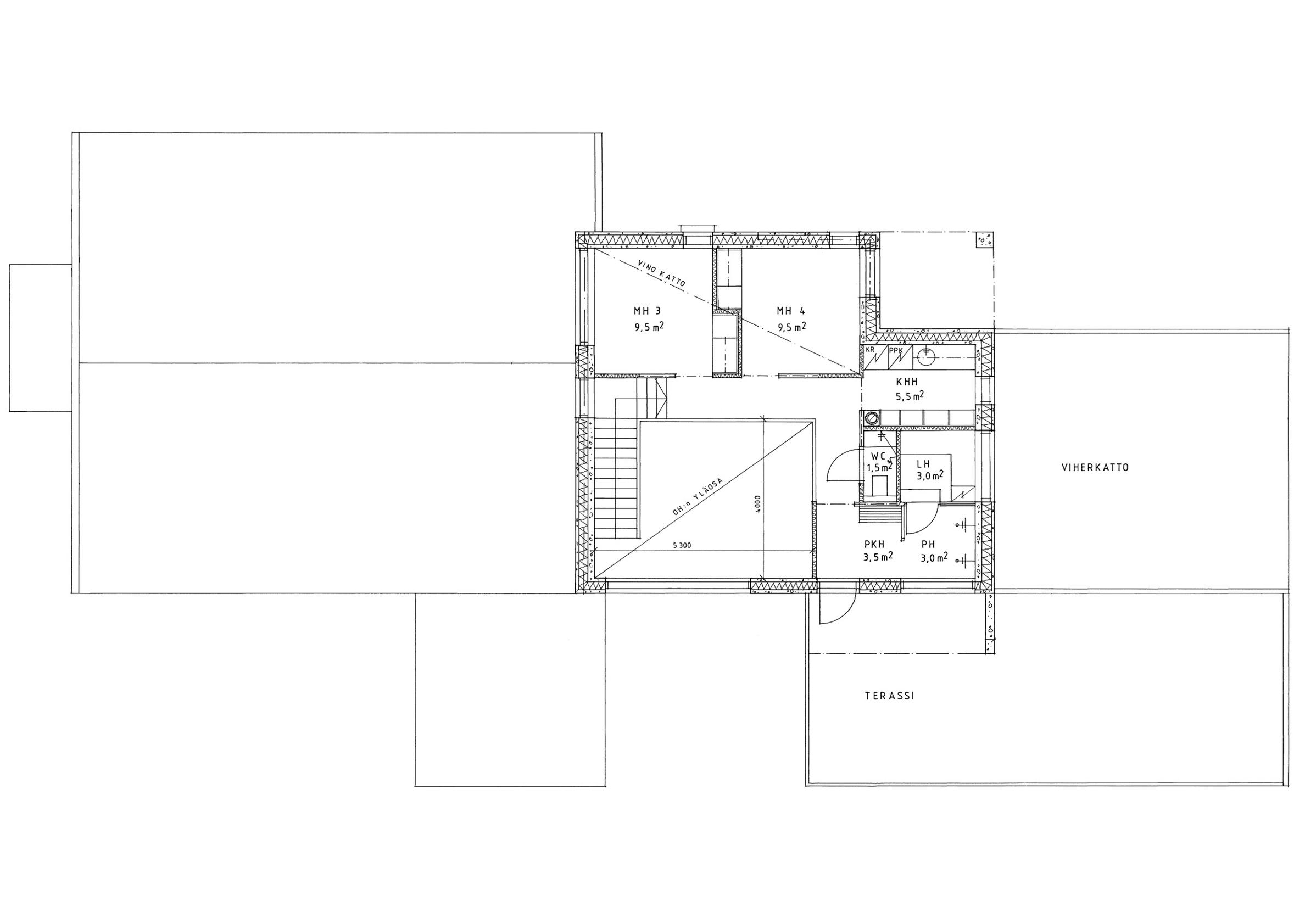 5h+k+khh+s+ viherhuone + kattoterassi 158,5 m2 + viherhuone 18 m2
