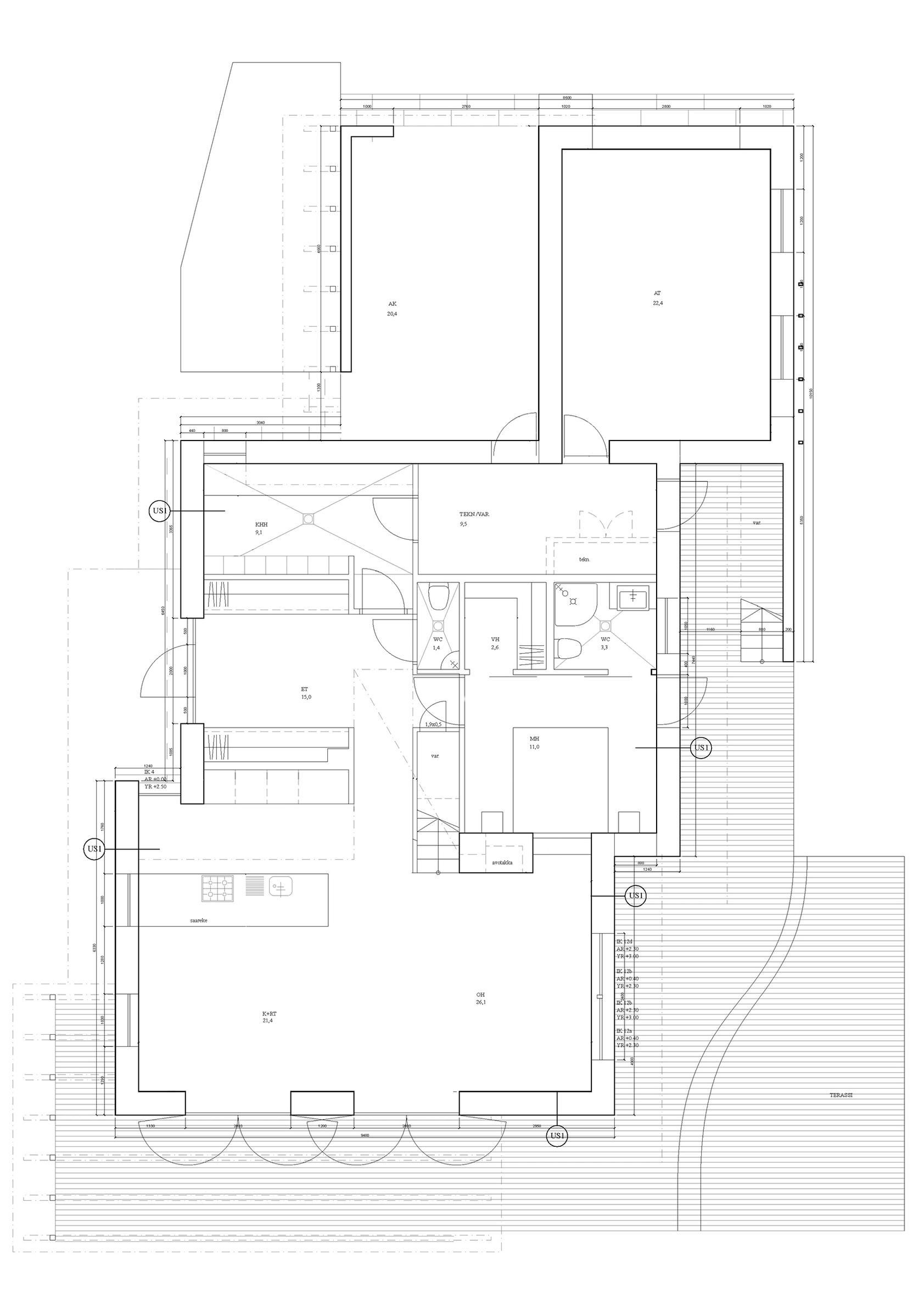 Erityistä: Talo on rakennettu muuttovalmiina, rakennuttajaperheen asuessa Belgiassa. Pohjaratkaisu on optimoitu tilankäytön ja toimintojen, hyötyneliöiden maksimoimisen sekä myös ilmansuuntien mukaan.