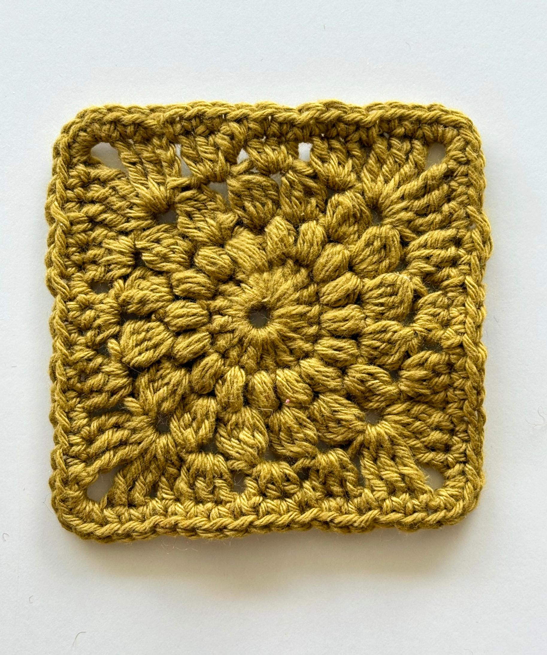 Neliöiden virkkaus oli helppoa. Itselleni uutta olivat puhvisilmukat (puff stitch) ja pitkät pylväät. Kun olin tehnyt muutaman neliön, muistin jo ohjeen ulkoa ja virkkaaminen nopeutui huomattavasti. Toki se auttoi myös, että minulla oli jo virkkauksen perusasiat hallussa.