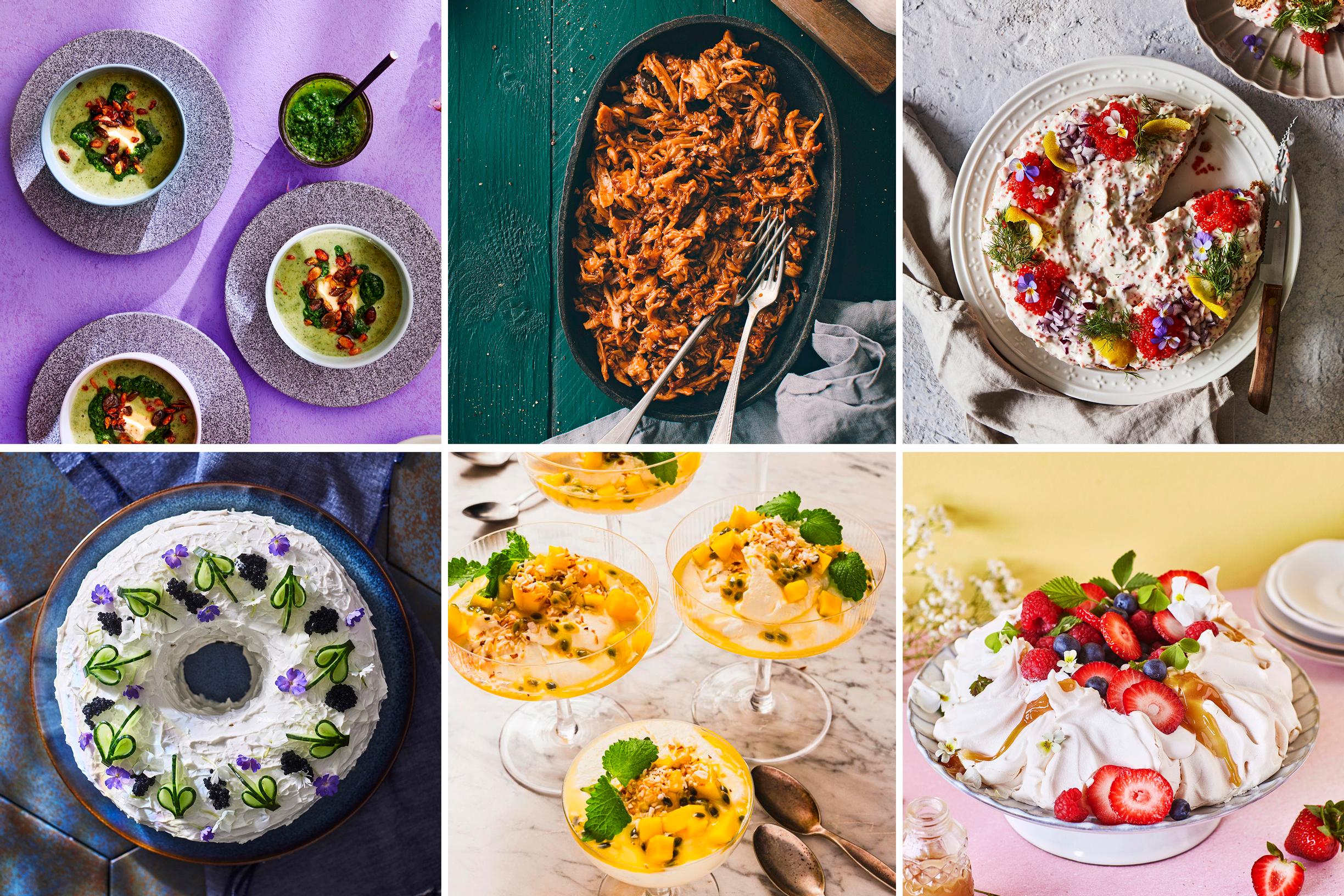 Jos jälkkäripöytääsi kuuluu oleellisesti kakut, kokeile vegaanista mango-kookosjuustokakkua, unelman keveää pavlovaa kookoskinuskilla tai vadelmilla koristeltua suklaamoussekakkua!