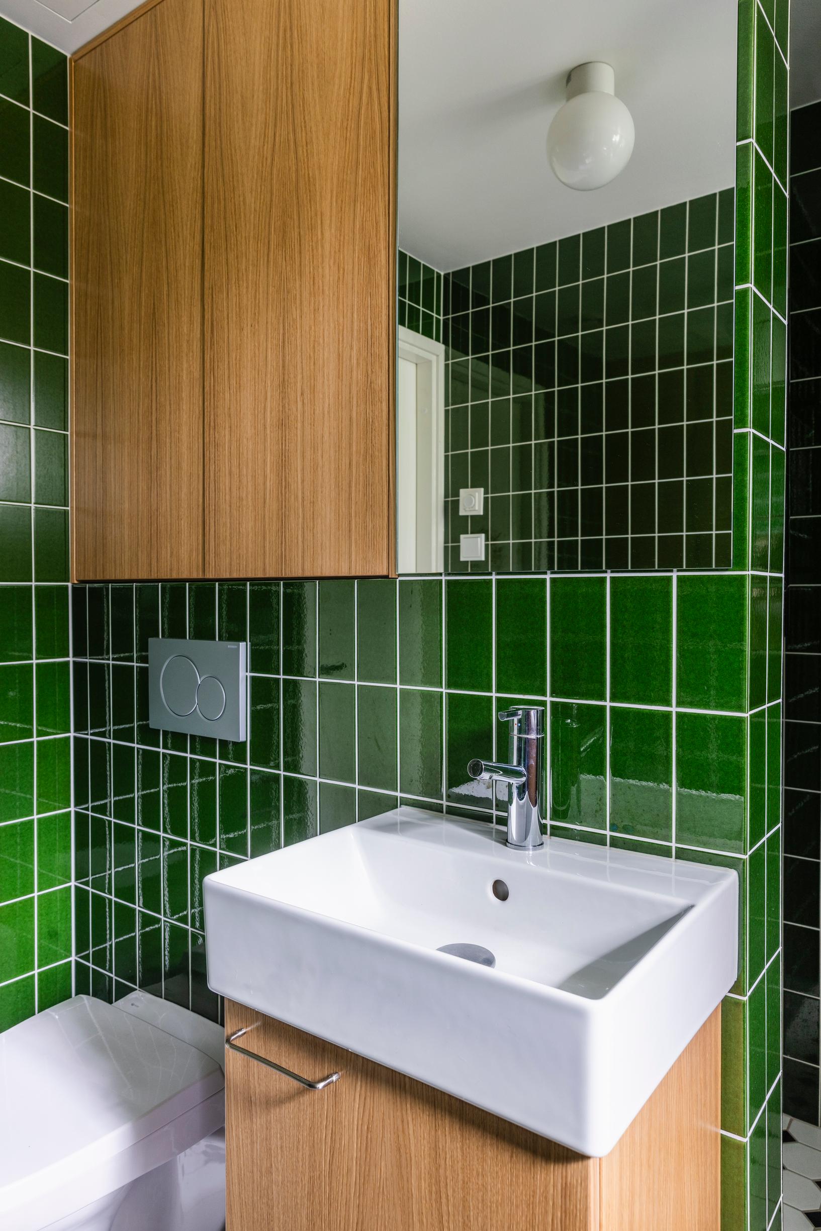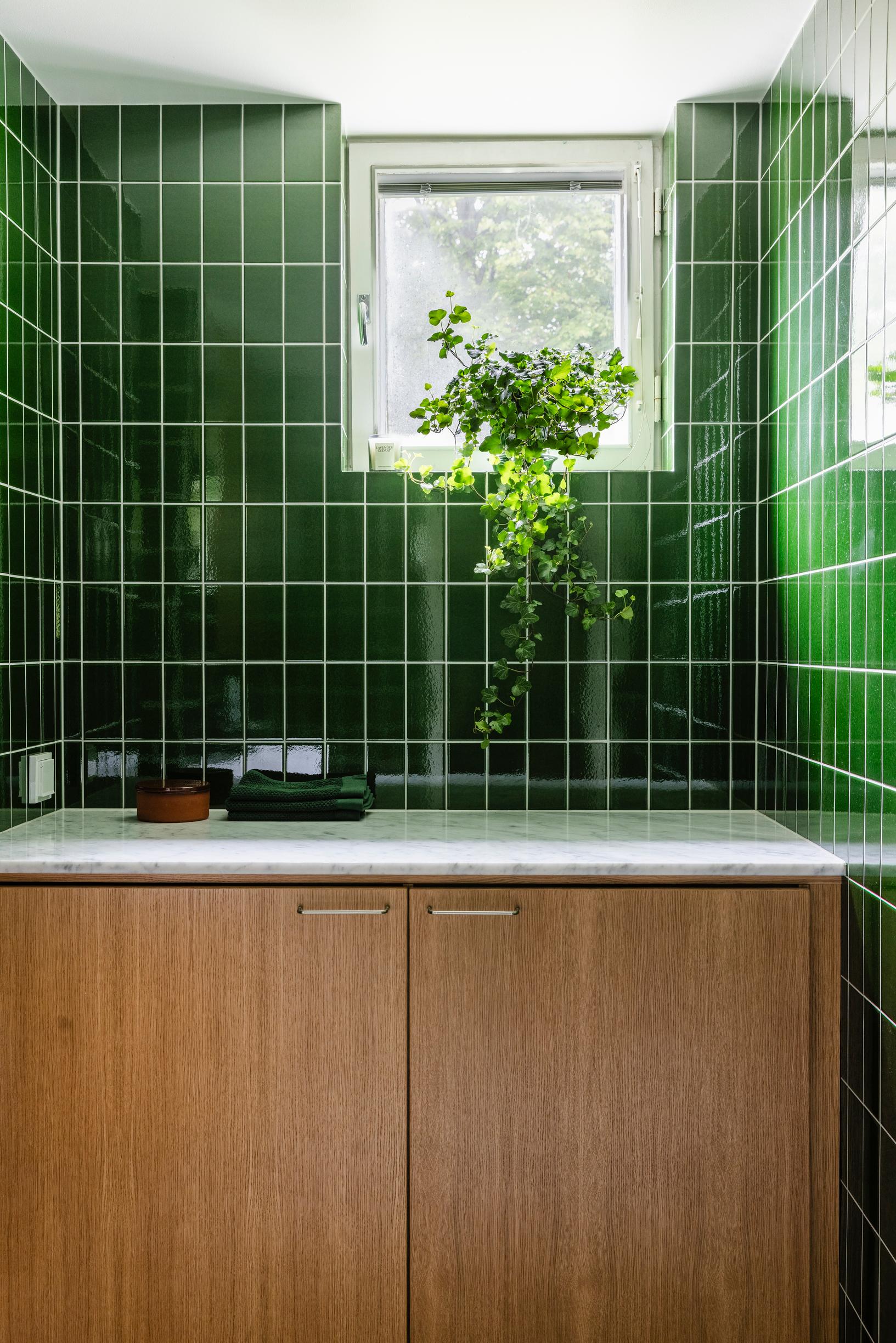 Uskaltaisitko tehdä saman väritempun? Lähes kokovihreäksi remontoitu kylppäri on viiden neliön tilaihme