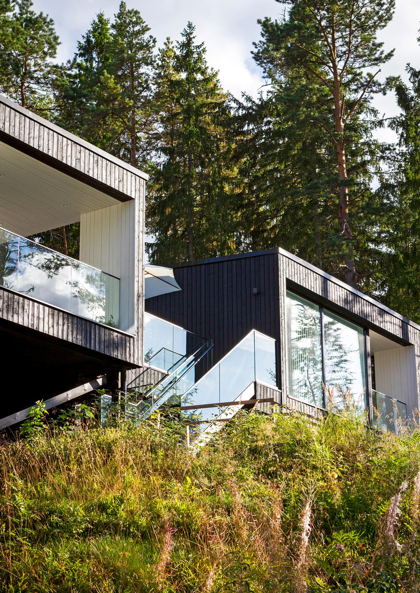Rinteessä puujalkojen varassa kohoaa moderni musta puutalo. Se on Ulla-Maija Tammisen huvila, jonka hän pystytti lapsuutensa rakkaimman maiseman äärelle.