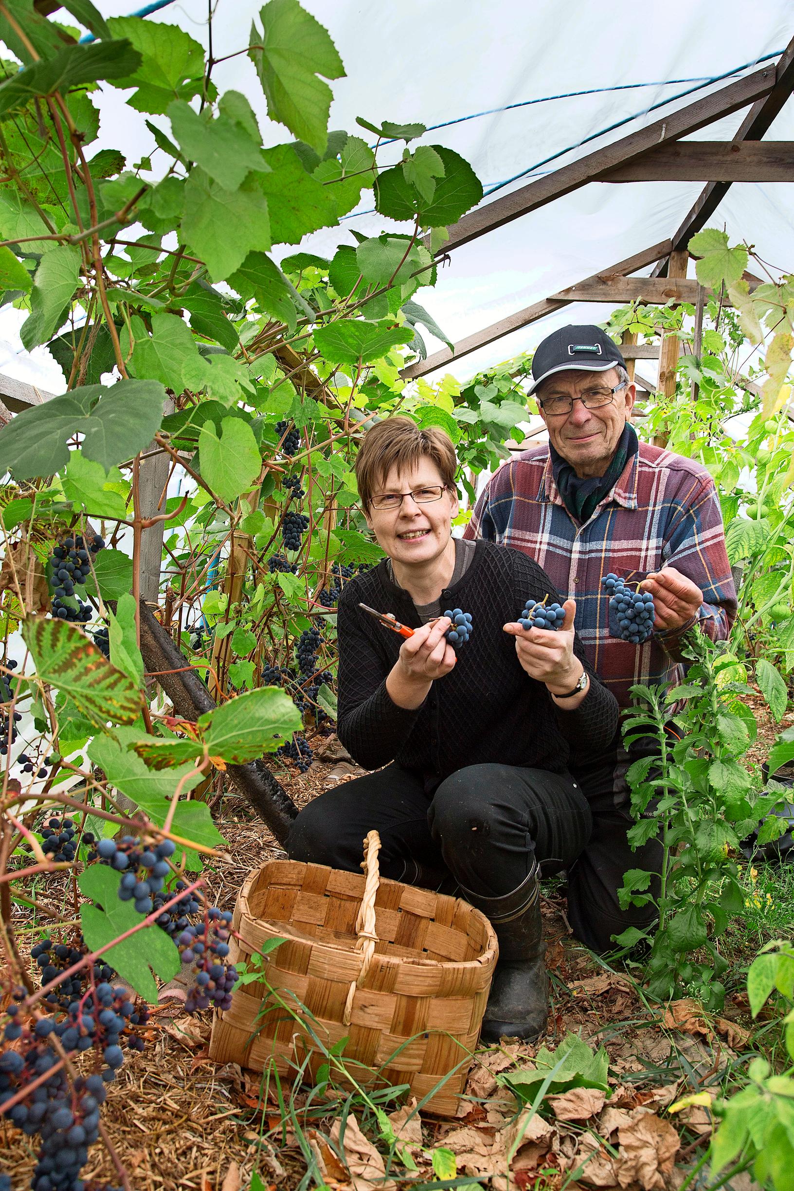 Helena Tiililä on kokeillut kymmenien viiniköynnöslajikkeiden viljelyä löytääkseen niiden joukosta kaikkein maukkaimman, Suomen kasvuoloihin sopivan herkkurypäleen.