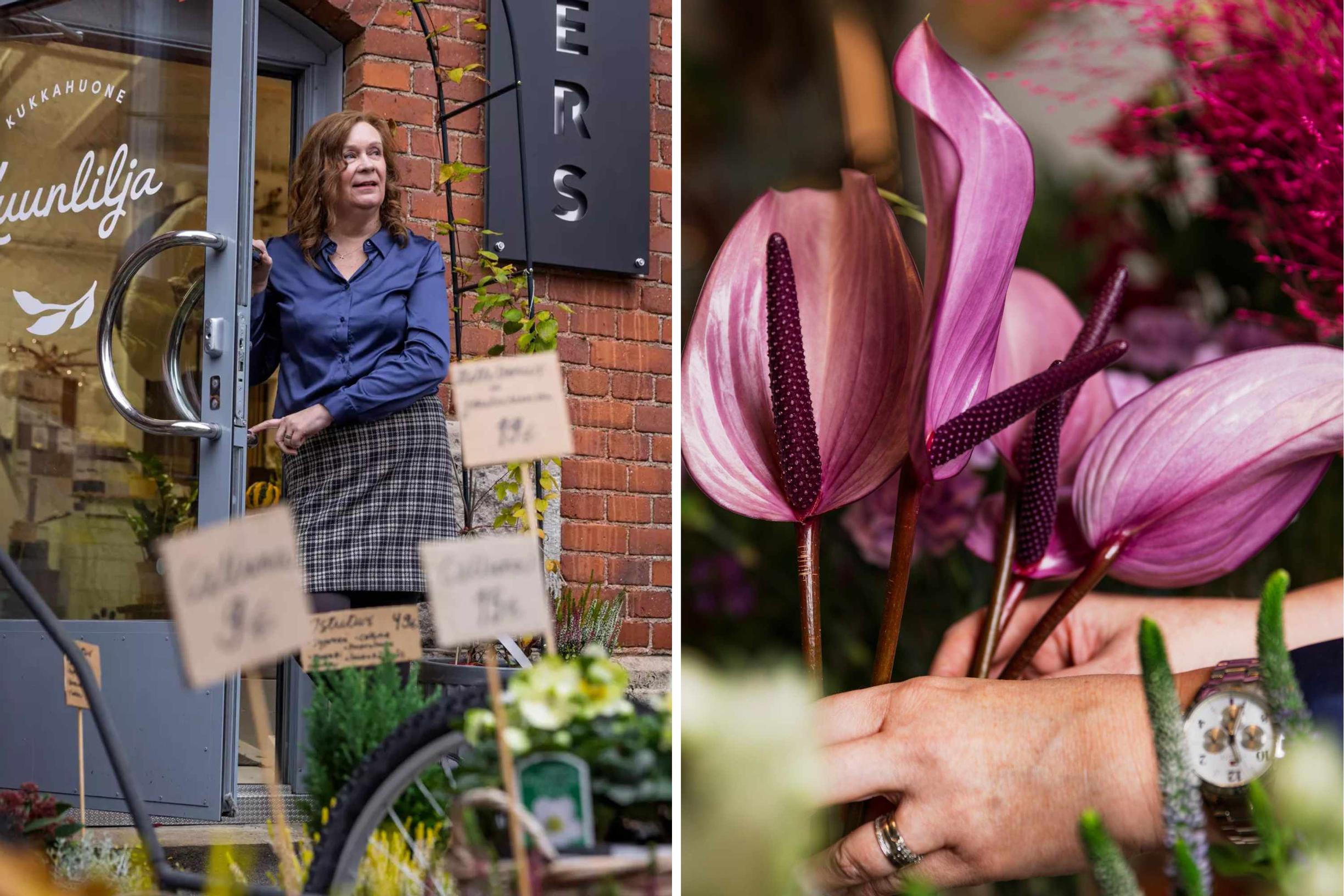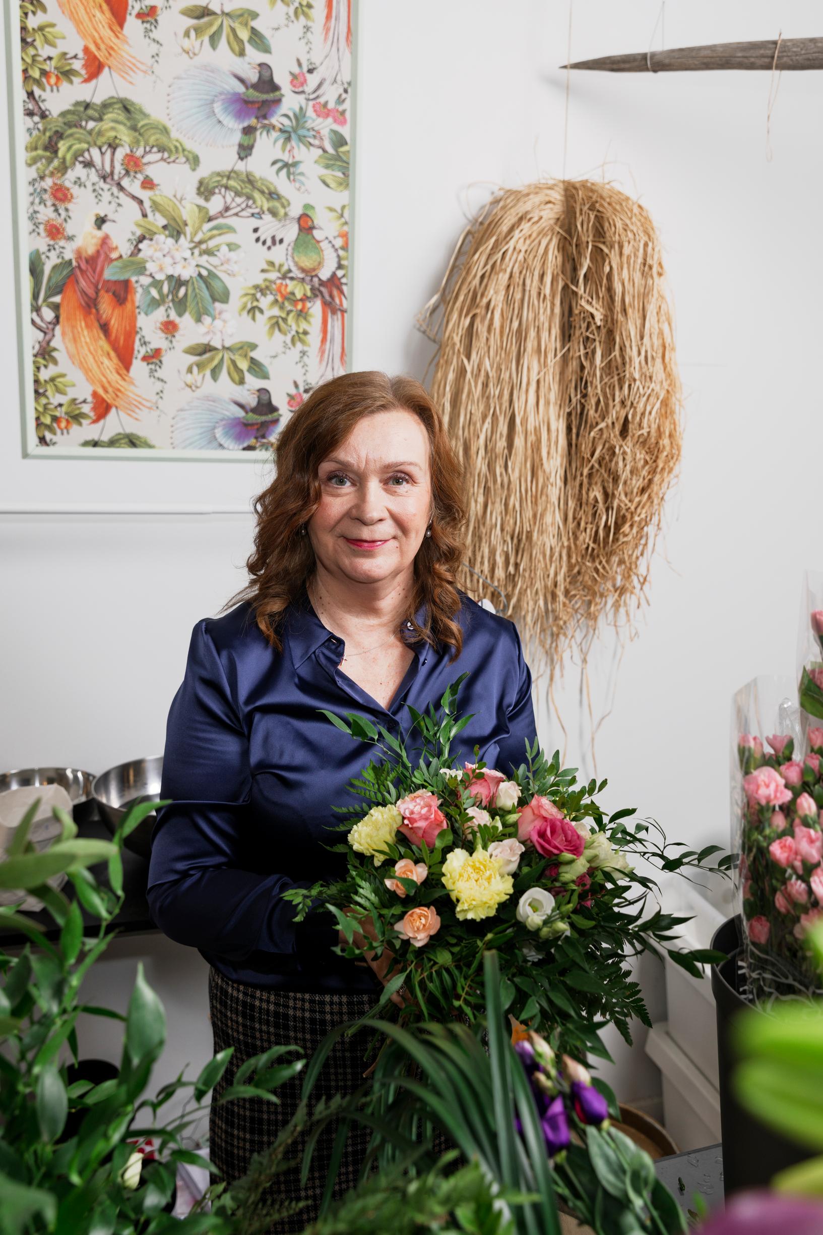 Jos en saa perustaa kukkakauppaa juuri tähän, en perusta sitä ollenkaan. Niin Mari Helkiö-Heinonen, 55, ajatteli, kun astui tyhjään liiketilaan Turun Kakolanmäellä. Historialliselta vankila-alueelta löytyi soppi, jossa oli paksut kiviseinät ja luonnetta. Mari ihaili liiketilan korkealle kurottelevaa valkoiseksi rapattua kattoa.
