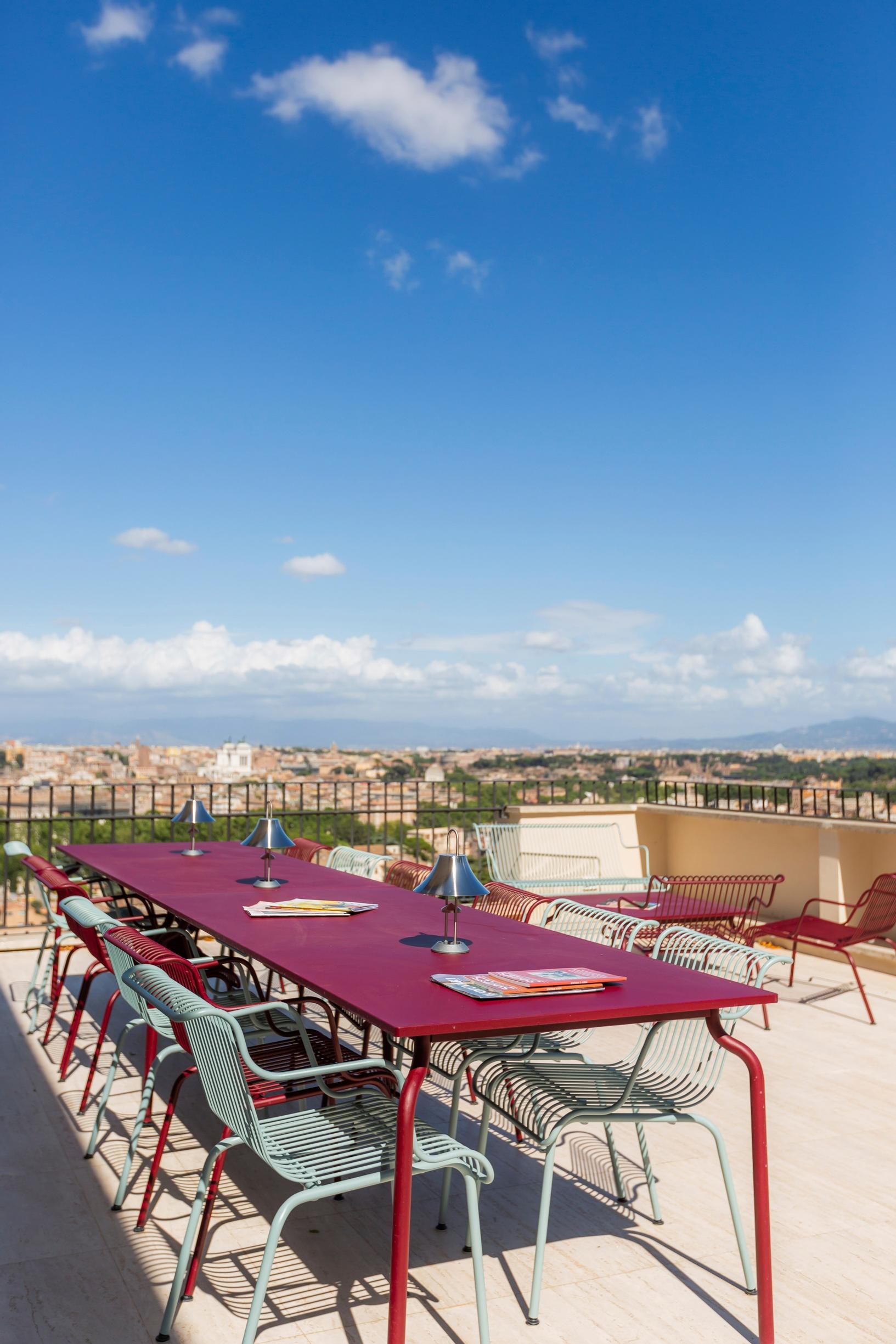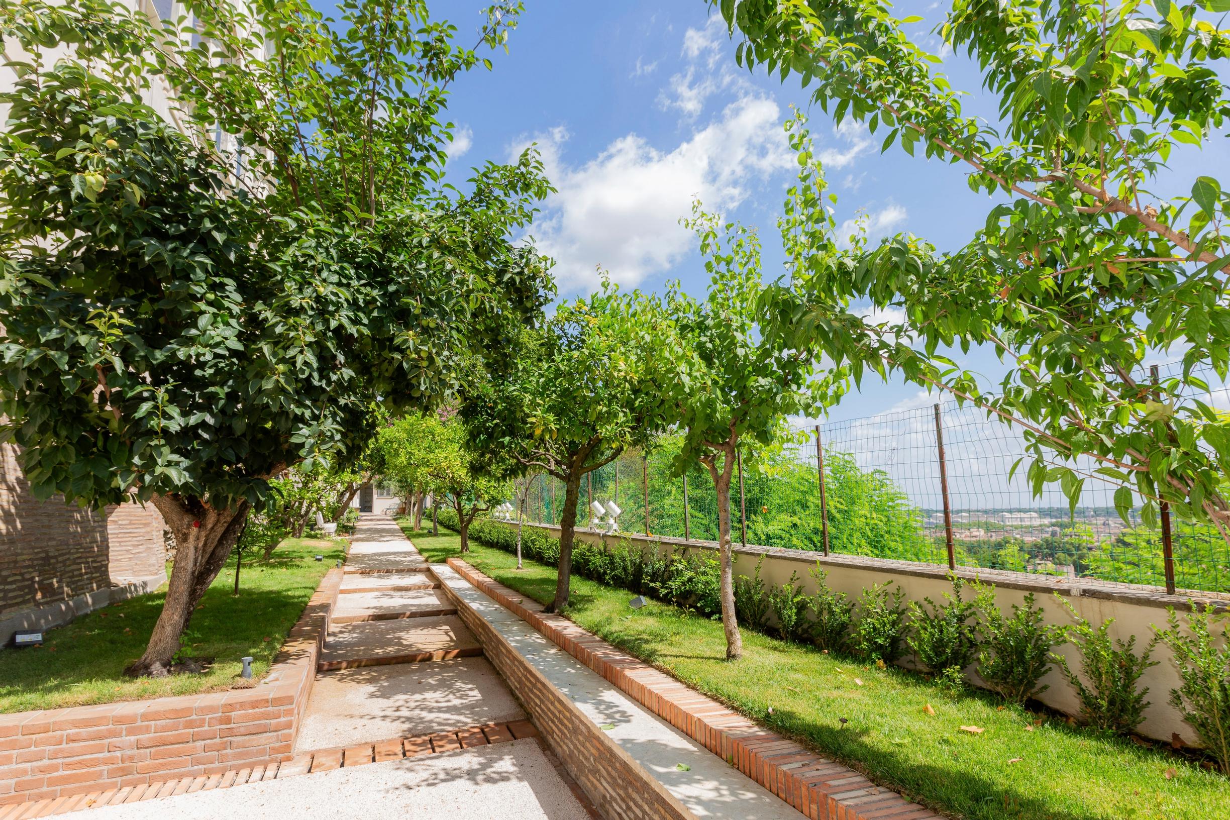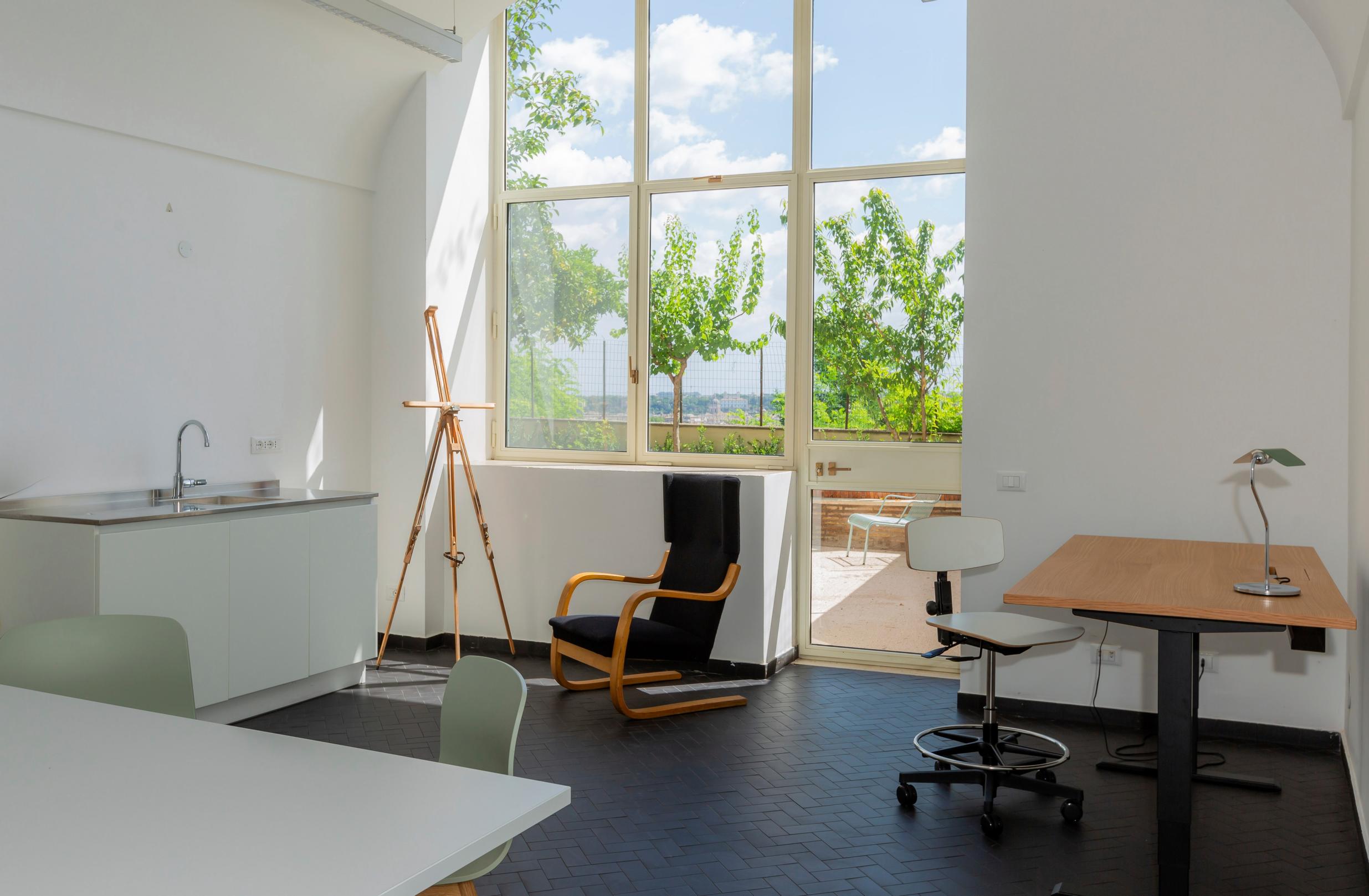 Peruskorjaus ulottui huvilaa ympäröivään puutarhaan. Italialaisen maisema-arkkitehdin johdolla tehty puutarhasuunnitelma jatkaa yhteisöllisyyden teemaa, ja ennen vähällä käytöllä ollut alue on muutettu asukkaille avoimeksi vihreäksi keitaaksi. Johtajan asunnon yhteyteen on rajattu kasvillisuudella yksityinen terassi ja piha, josta avautuu näköala yli Rooman.