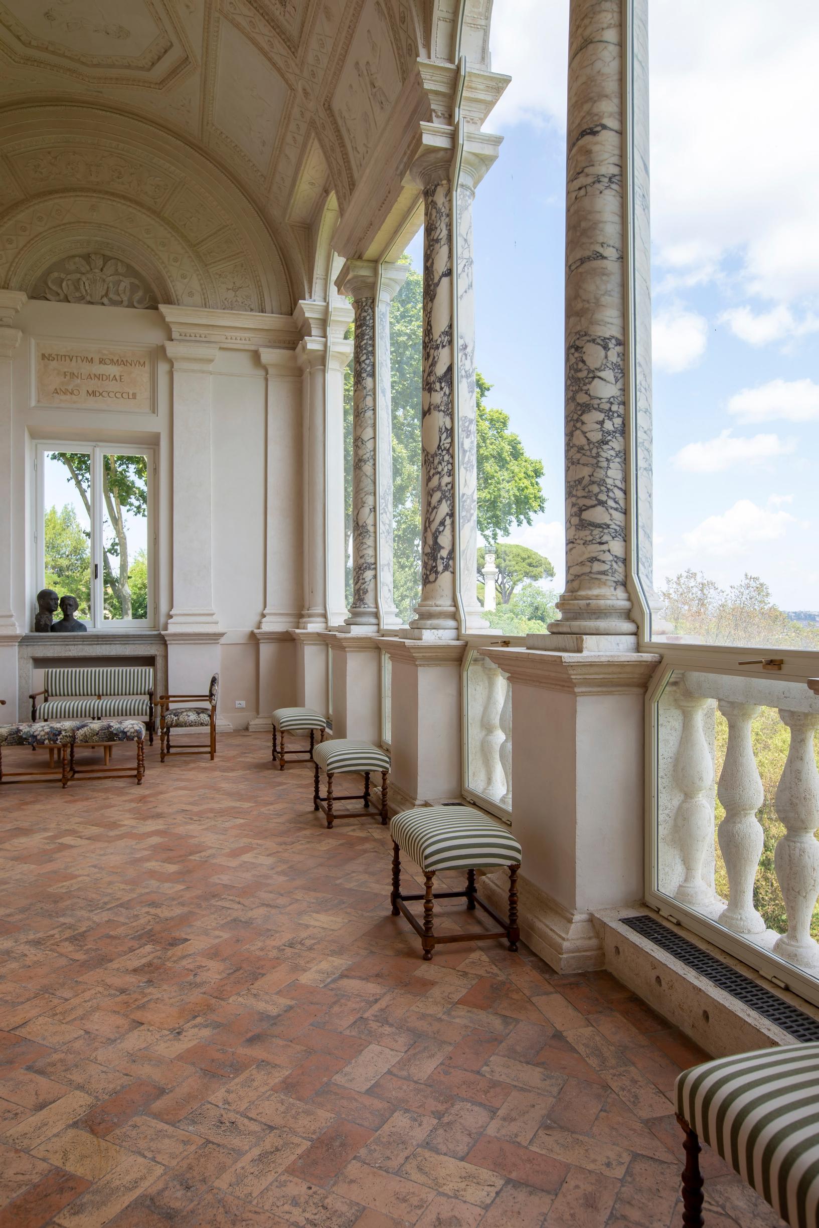 Mitä värejä, ruutuja ja pintoja! Suomen Rooman-instituutin uusi sisustus yhdistää ainutlaatuisesti Italian renessanssin ja kotimaisen nykymuotoilun. Joukkoon on päässyt eräs Yki Nummen klassikkokin. Uskomaton Villa Lante on jälleen avattu myös yleisölle.
