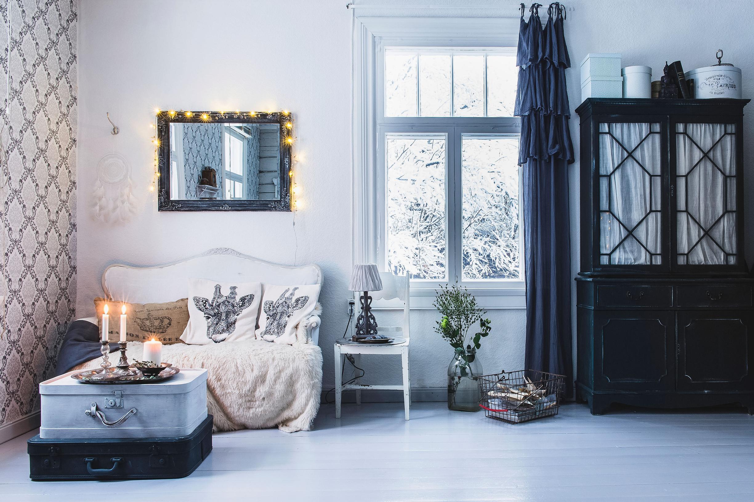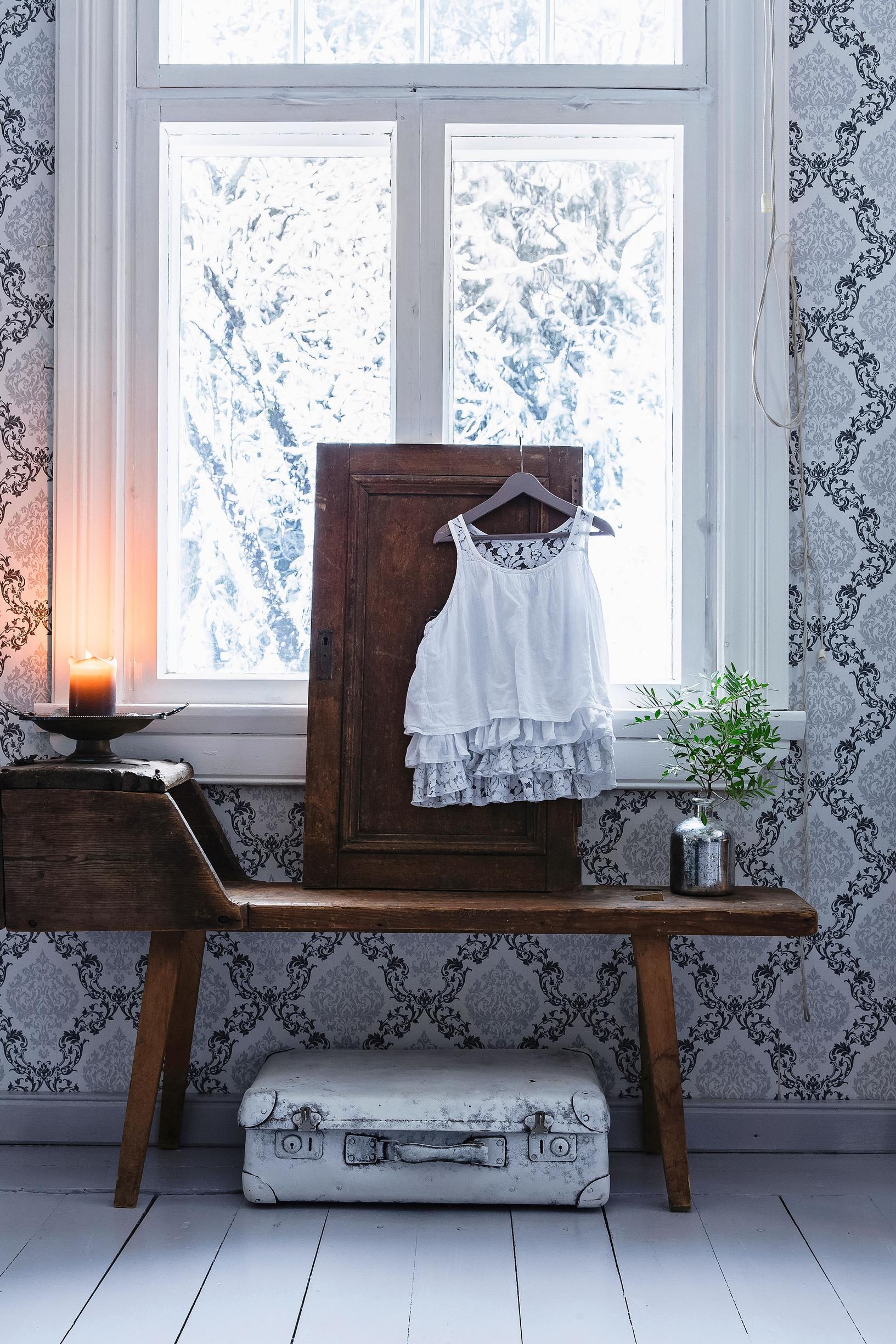 ”Kuljen maalipurkin, sudin ja tapettirullan kanssa. Vaihdan, poistan, maalaan ja kokeilen. En kaihda väliaikaisia ratkaisuja, sillä teen ne aina edullisesti. Tuunaan vintillä olevia kalusteita ja esineitä. Kodin ilme voi muuttua päivässä. Mieluiten kierrätän.