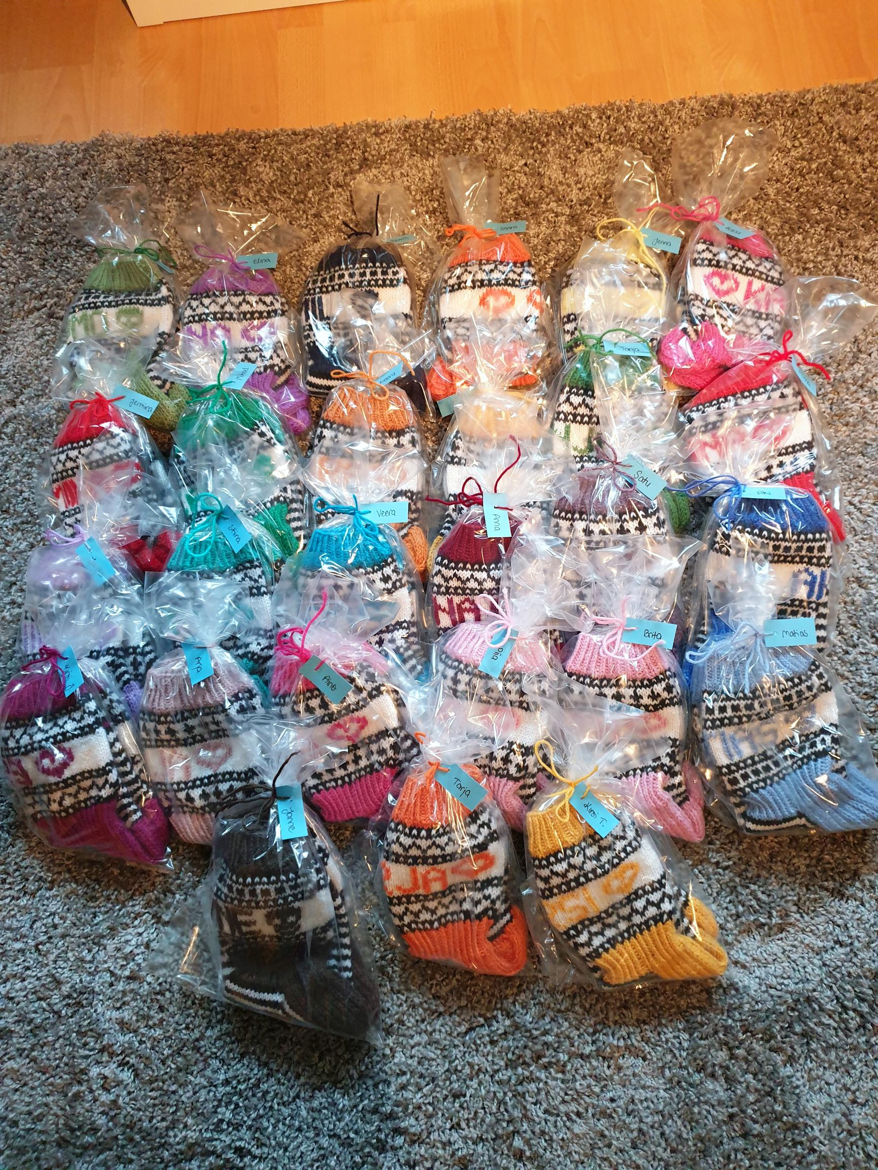 Yhtenä päivänä Kirsi kantoi työpaikalle kaksi isoa kassillista villasukkia ja kertoi, että joukosta löytyy jokaiselle omat.