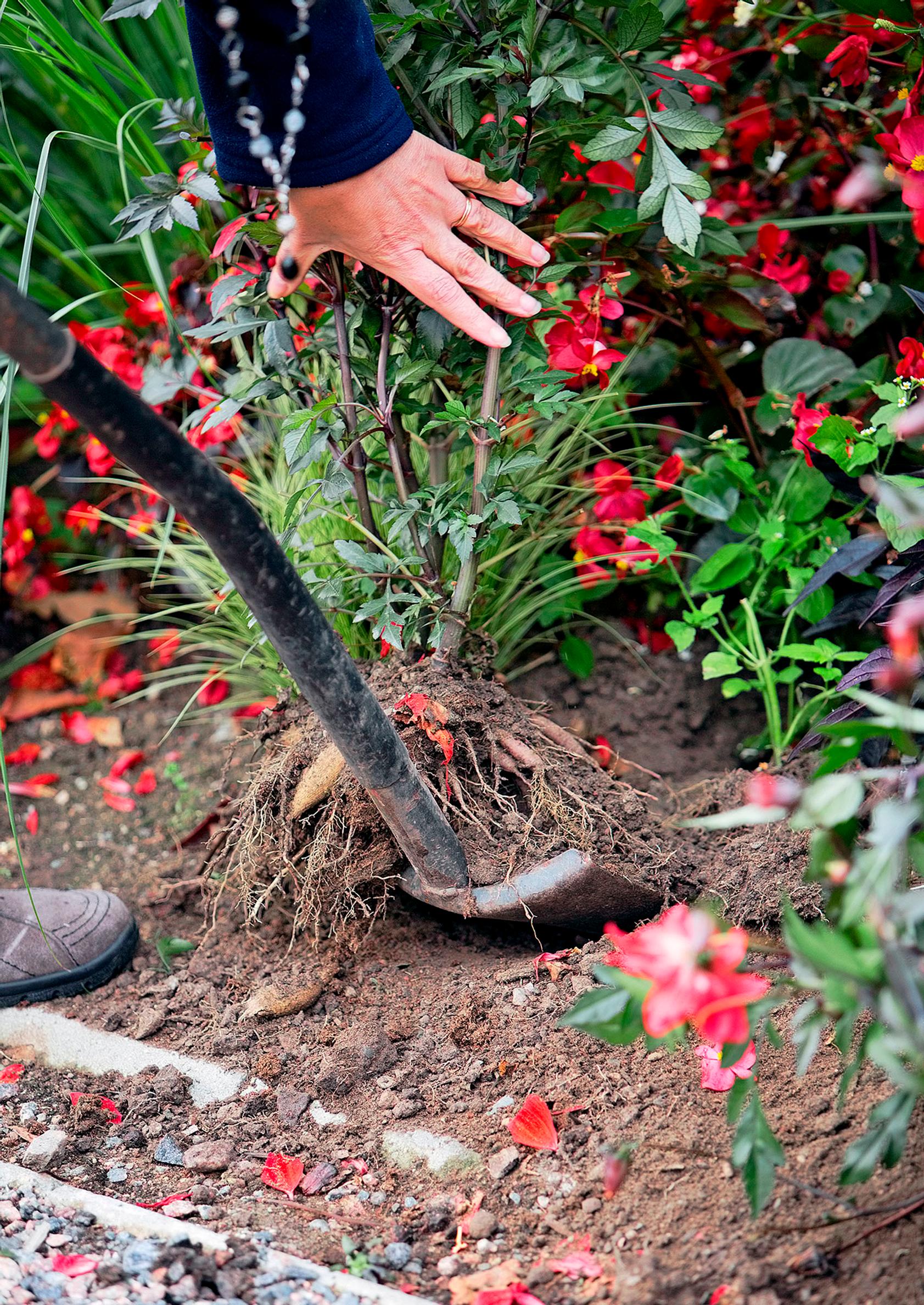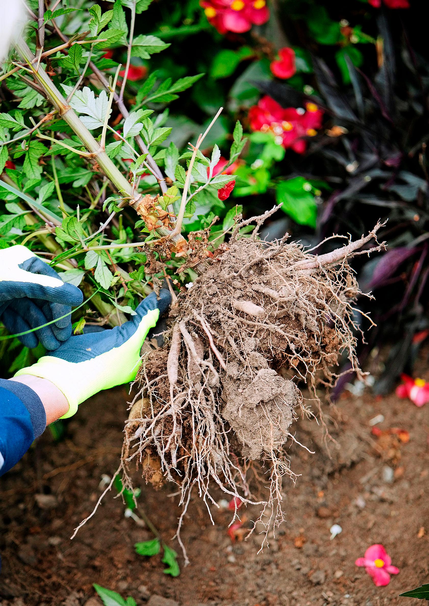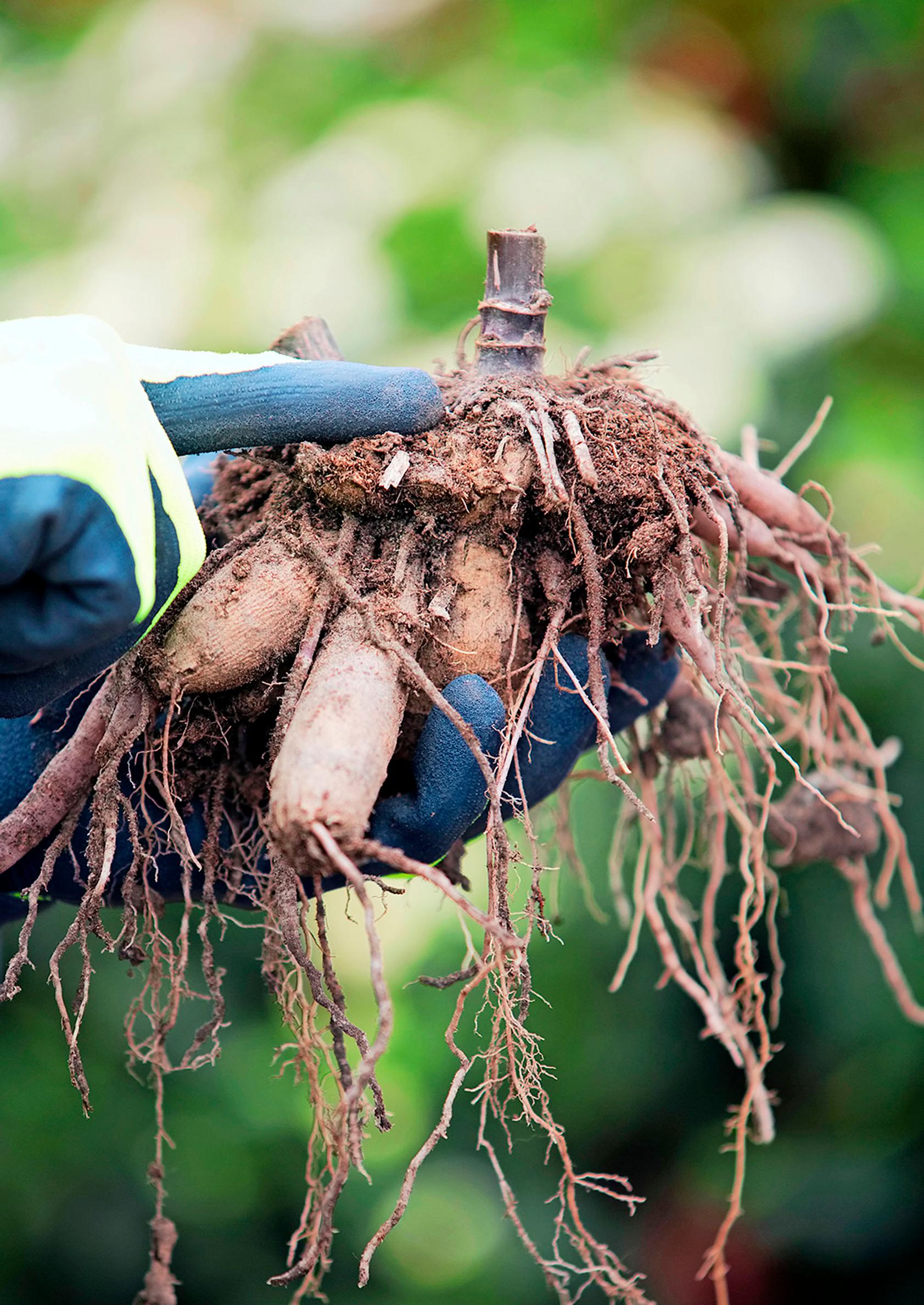 2. Rapsuttele ja ravistele ylimääräinen multa pois. Osa mullasta saa jäädä juurien ympärille.