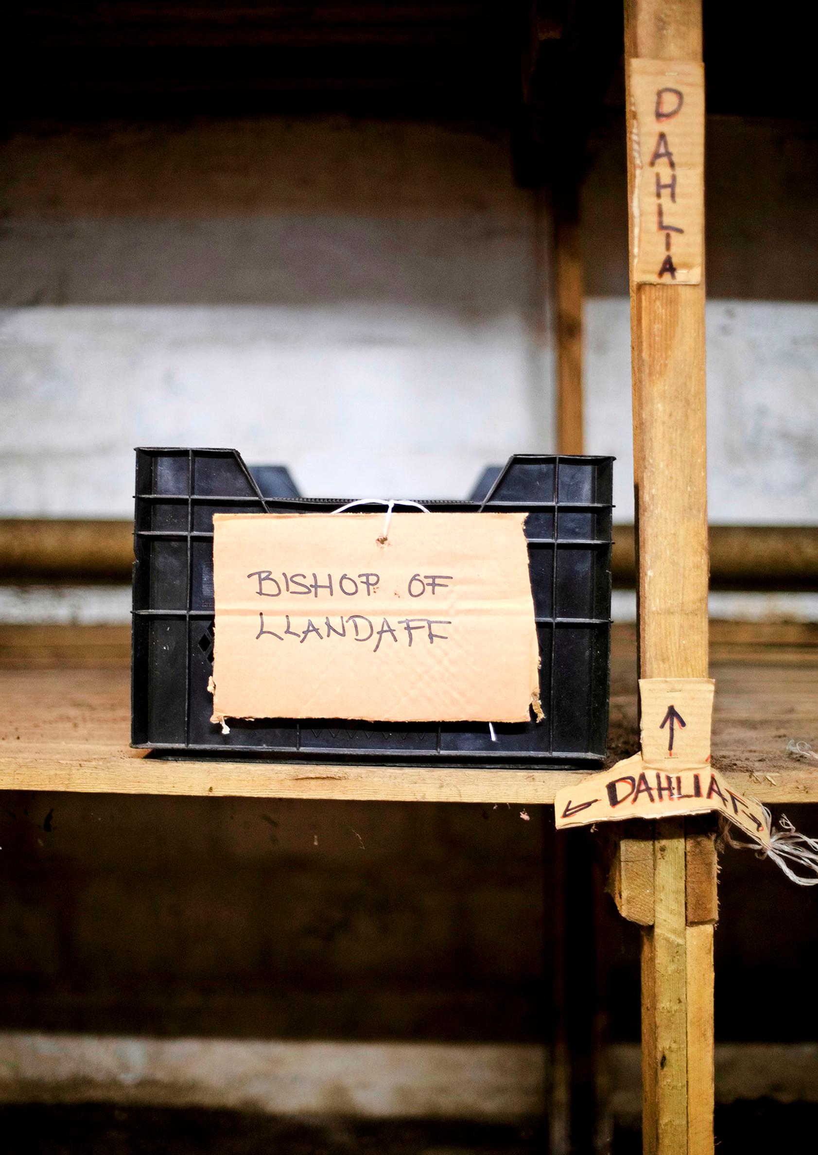 5. Talveta daalian mukulat pimeässä ja viileässä kellarissa, komerossa tai varastossa. Ihannelämpötila talvetukseen on +5–10 astetta. Tärkeintä on kuitenkin, että lämpötila pysyy plussan puolella. Lado juurakot laatikoihin ja varusta ne nimilapuilla. Ripottele päälle hiekkapitoista multaa tai kasvuturvetta. Koneellisesti jäähdytetyssä, kuivassa varastossa voit vähentää juurakoiden haihduntaa ilmavalla peitteellä. Kastele kuivia juurakoita kevyesti talven aikana.