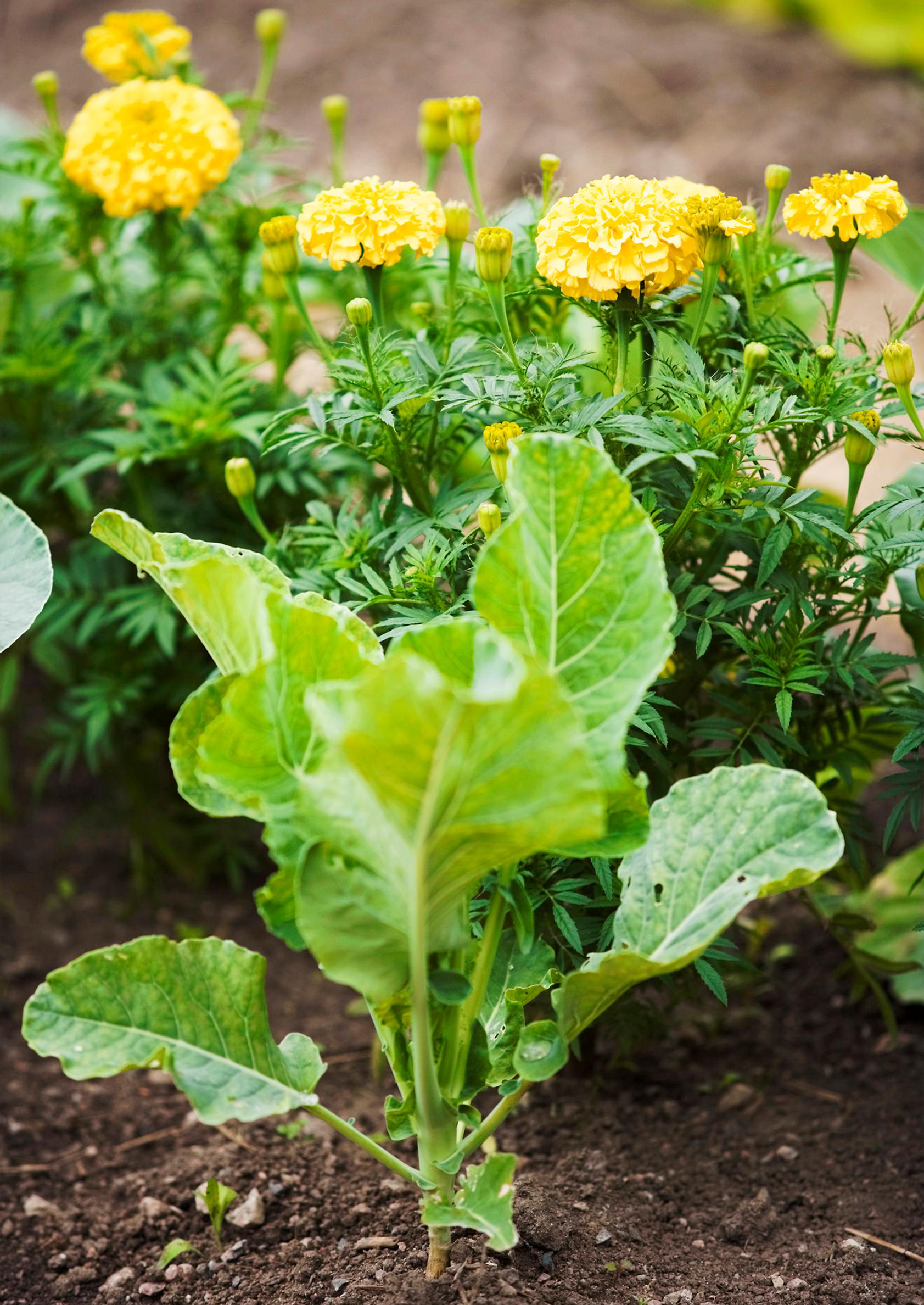 Tuholaistorjunnassa käyttökelpoisia ovat myös syöttikasvit, kuten kiinankaali. Se kerää herkästi tuholaisia, jolloin viljeltävät kaalit saavat olla rauhassa. Kukkien viljely lisää puutarhan hyödyllisiä petohyönteisiä, jotka vähentävät tuhohyönteisten määrää. Kasvimaata tarkkailemalla voi löytää sopivia syöttikasveja ja oppia hyödyntämään kasvien naapuruussuhteita.
