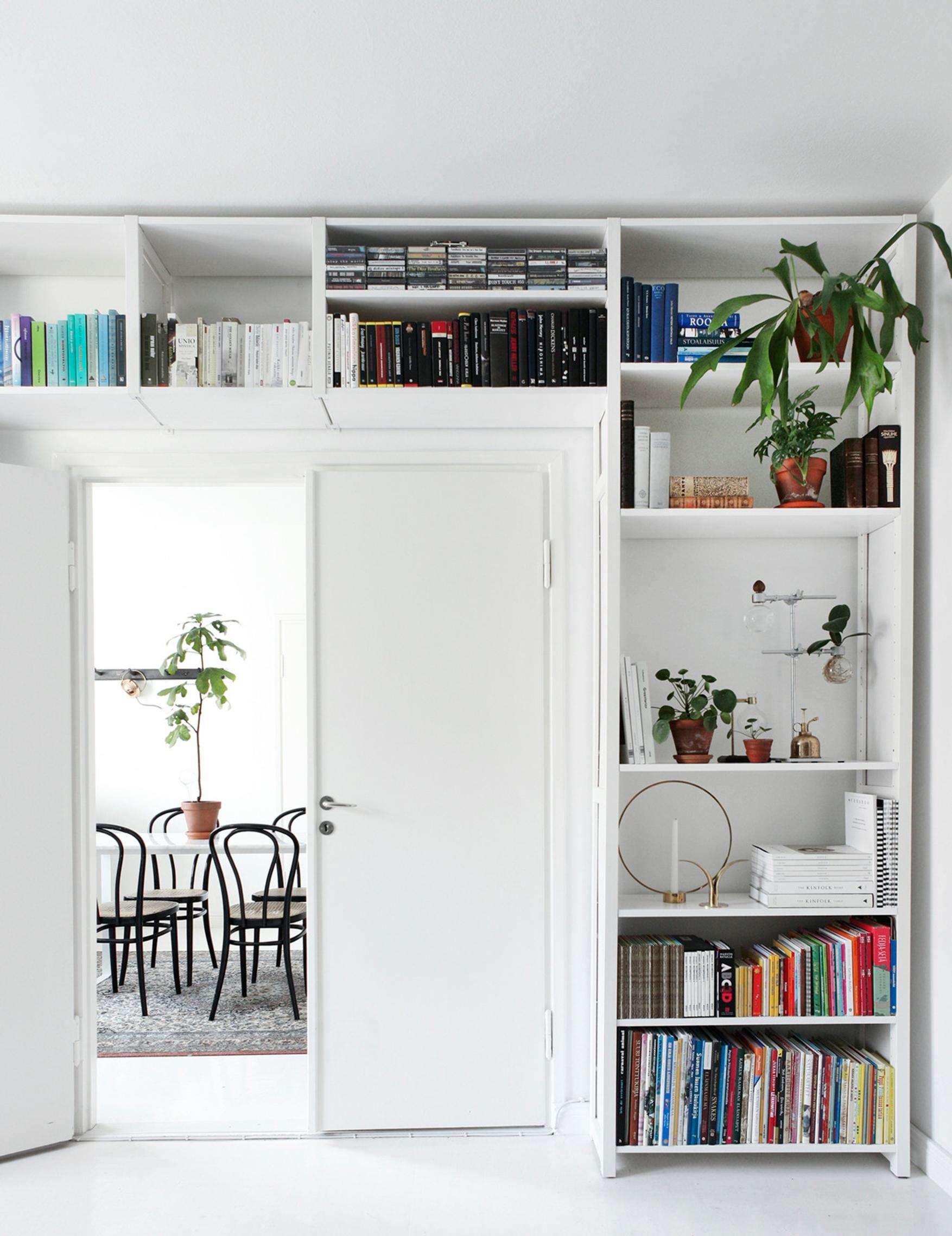 Kun säilytystila on kortilla, pakkautuu yhteen huoneeseen usein useampi säilytyskaluste. Vaihtele näiden korkeuksia, niin vältyt tasapaksulta ja lattealta ilmeeltä. Yhdistä esimerkiksi matalaan tv-tasoon keskikorkea senkki ja täyskorkea kirjahylly, niin kokonaisuus säilyy tasapainoisena.