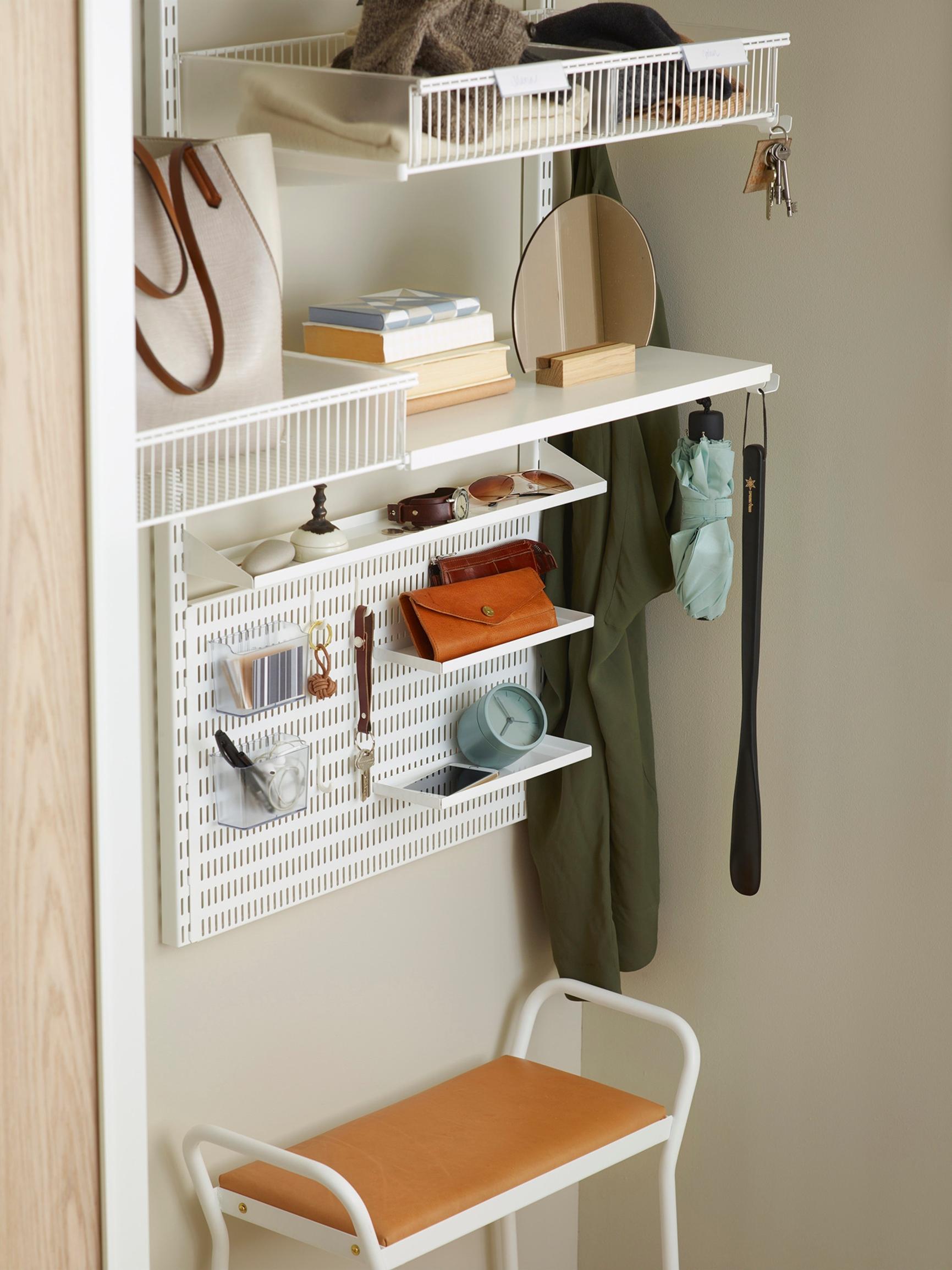 - Nosta säilytys seinille hyllyjen ja umpikaappien avulla. Trendikkäät ja monikäyttöiset katosta lattiaan ulottuvat seinähyllyratkaisut syntyvät nopeasti ja edullisesti liimapuulevystä tai Elfa-hyllyn osista.