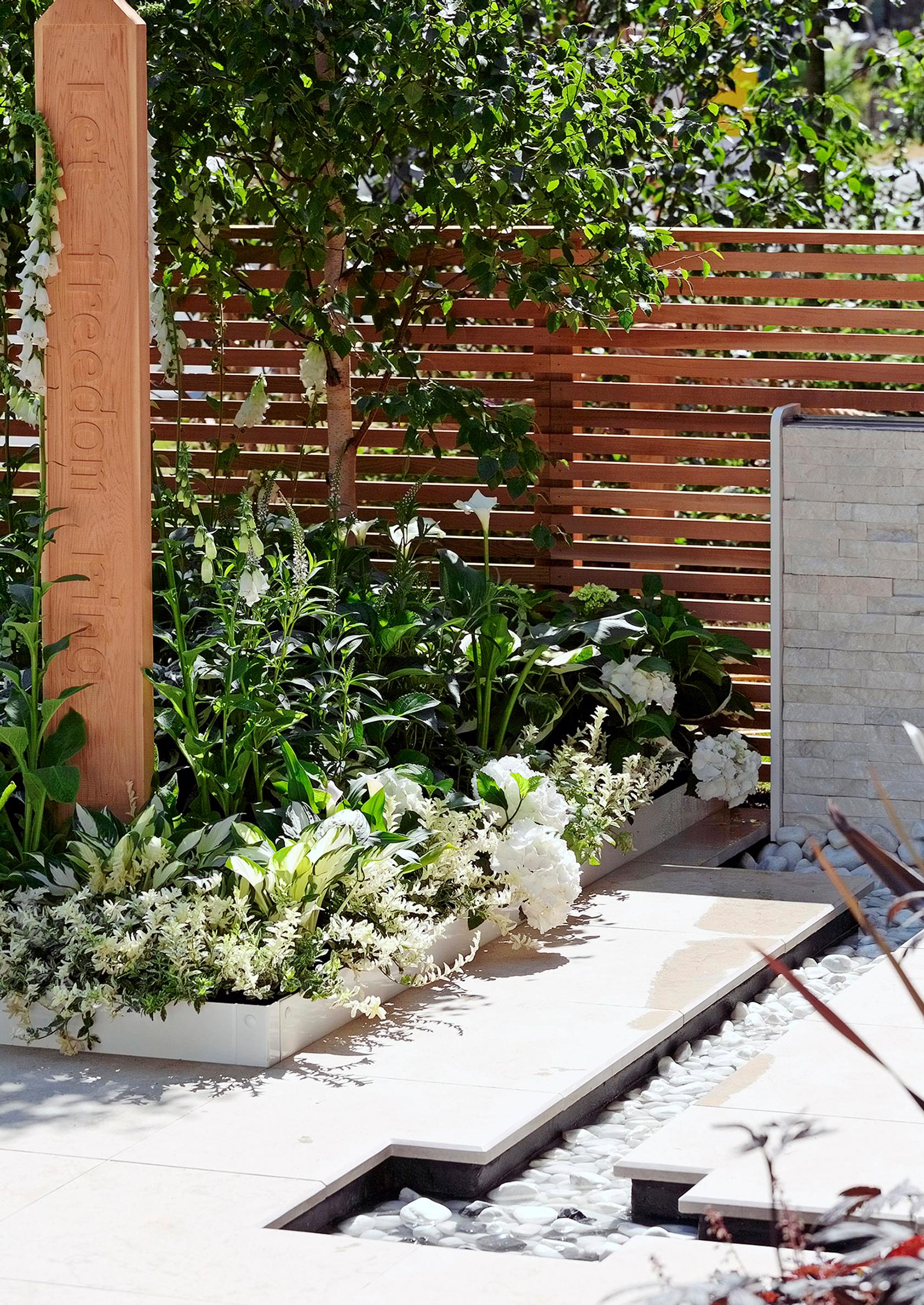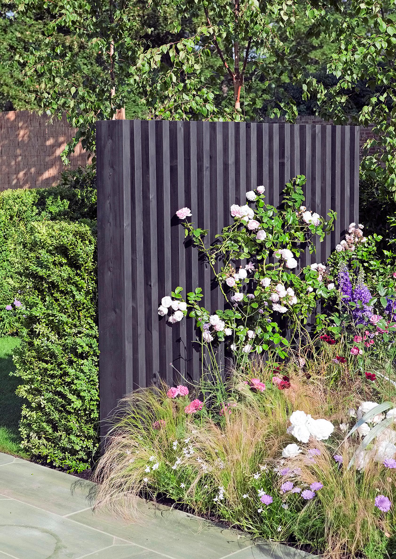 1. Aita vaikuttaa helposti karsinamaiselta, kovalta ja kolkolta. Puuvartiset kasvit aidan läheisyydessä antavat rakenteelle pehmeyttä. Yhdistele aitaa ja pensaita myös samassa linjassa, mikäli aidan ei tarvitse olla tehokas kulkueste.
