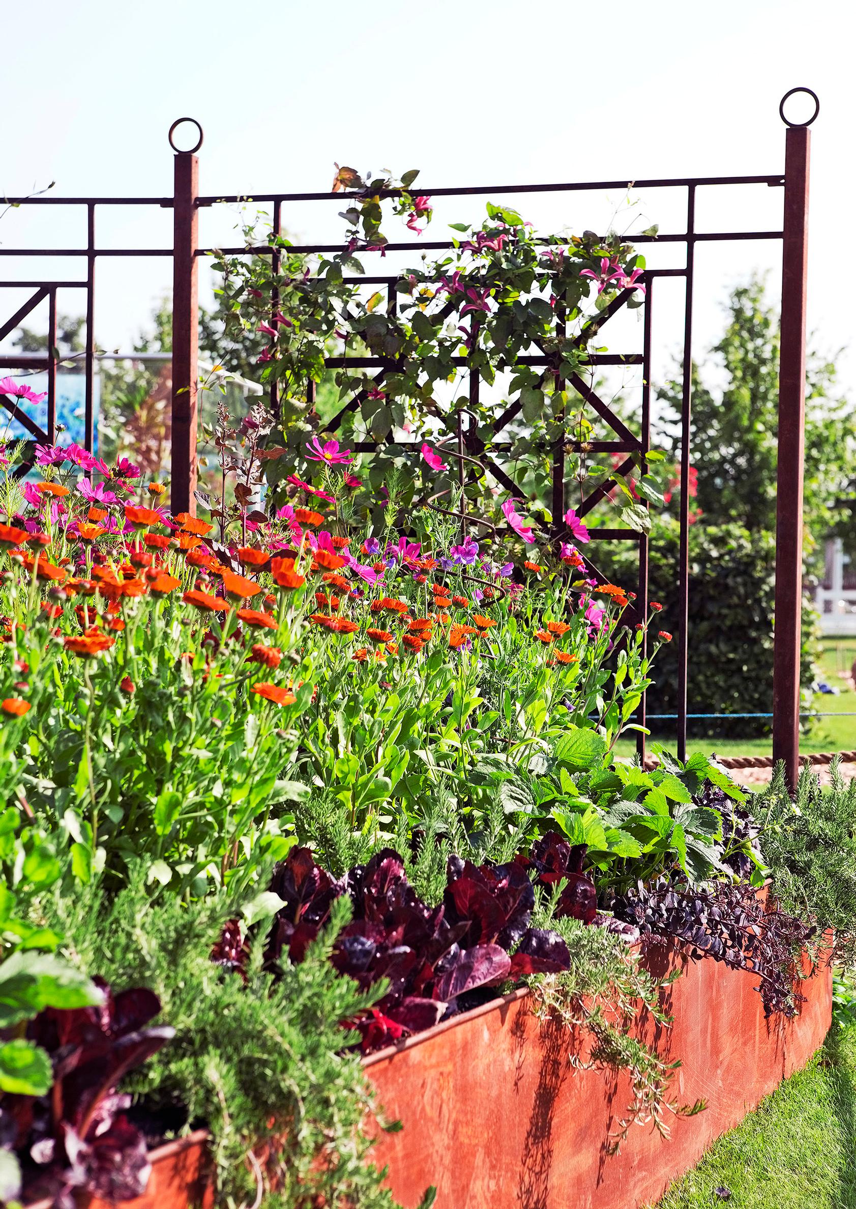 2. Teräksestä saa hyvin erilaisia piha-aitoja, jotka ovat kestäviä ja pitkäikäisiä. Teräksisistä elementtiaidoista eli kolmilanka-aidoista pystyt rakentamaan korkeita, ilmeeltään keveitä aitoja. Verkkoaidat sopivat puolestaan sellaisenaan köynnösten tueksi. Muista myös takorautaiset, koristekuviolliset aidat ja portit.