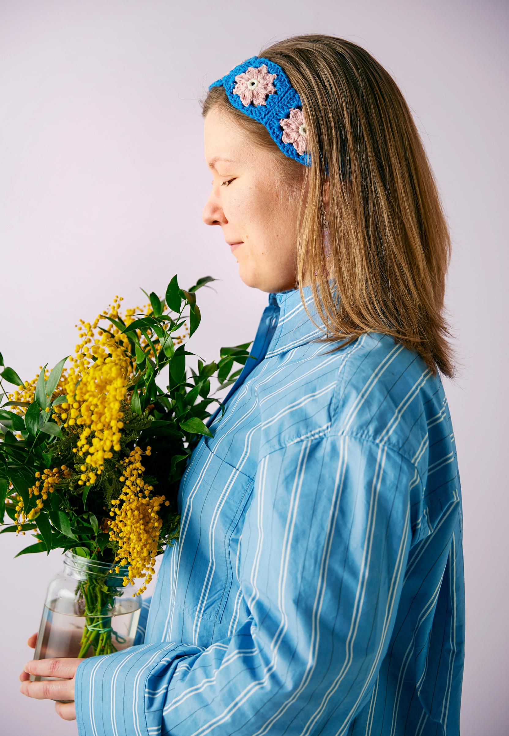 Virkattu hiuspanta kukkapaloista – katso helppo ohje, jolla teet pannan nopeasti