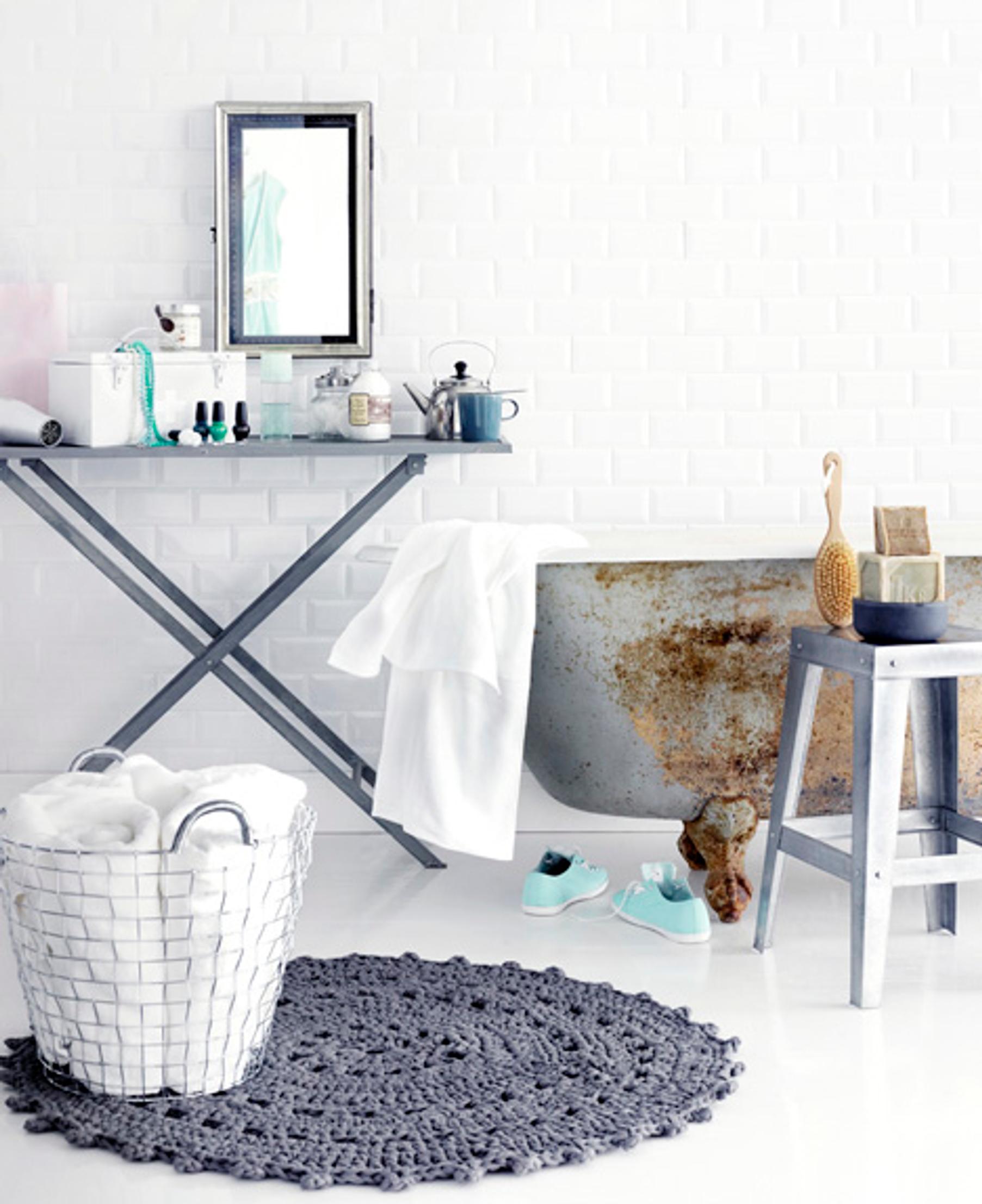 Virkkaa trikookuteesta rennon romanttinen kylpyhuoneen matto. Painava matto pysyy paikoillaan ilman liukuestettä.