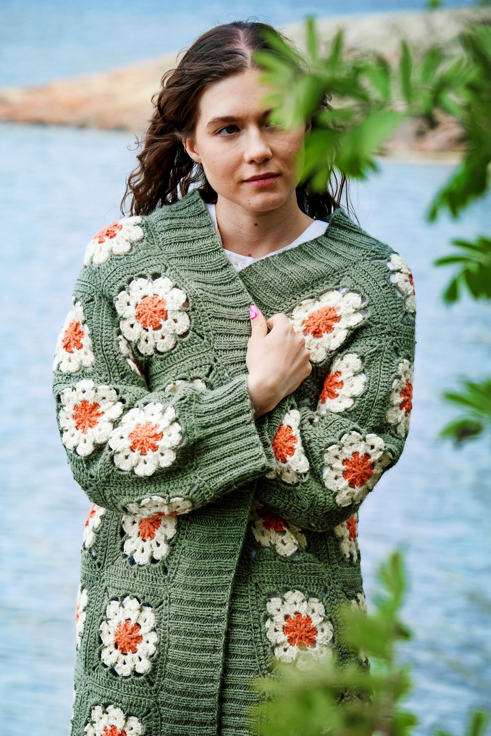 Virkattu neuletakki paloista – näyttävä kukkatakki syntyy helposti pala palalta