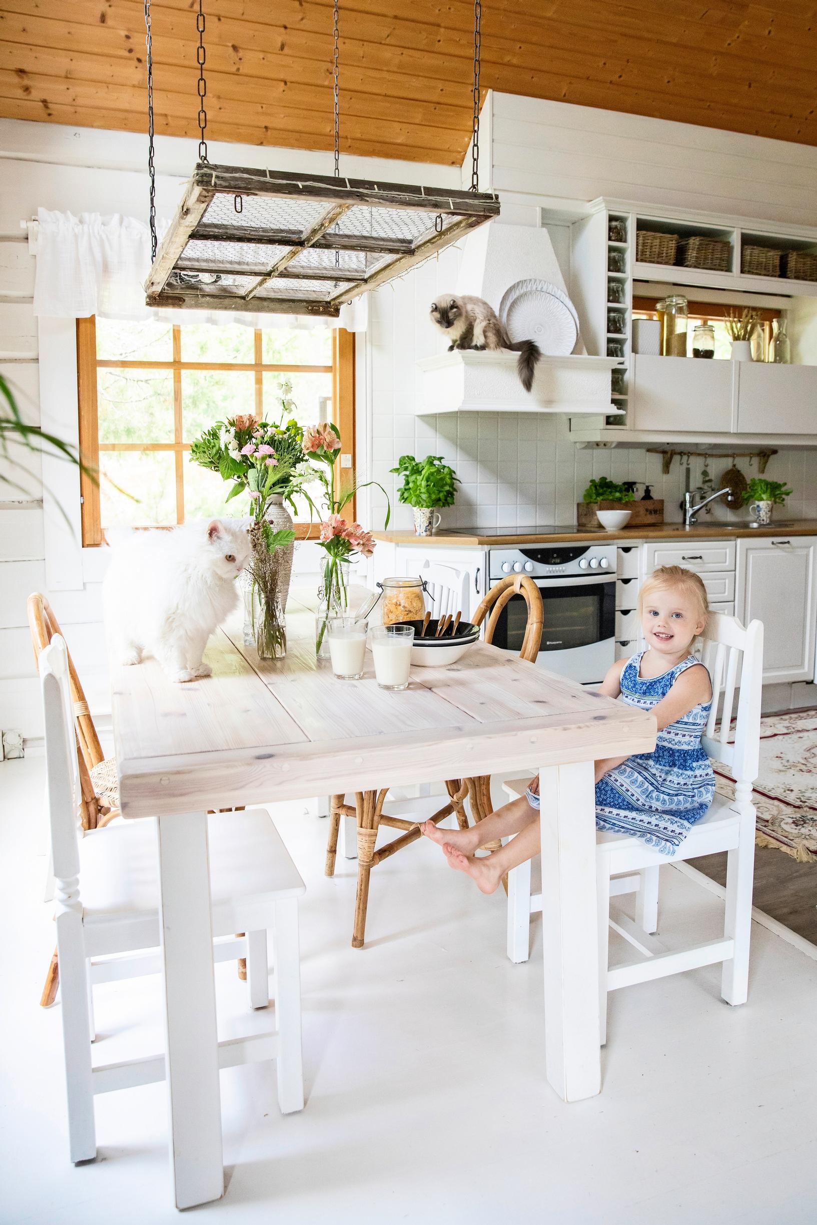 "Minulla on aina valkoista maalia jemmassa" – 2000-luvun alun hirsitalo raikastui Sonian ja Maxin käsissä