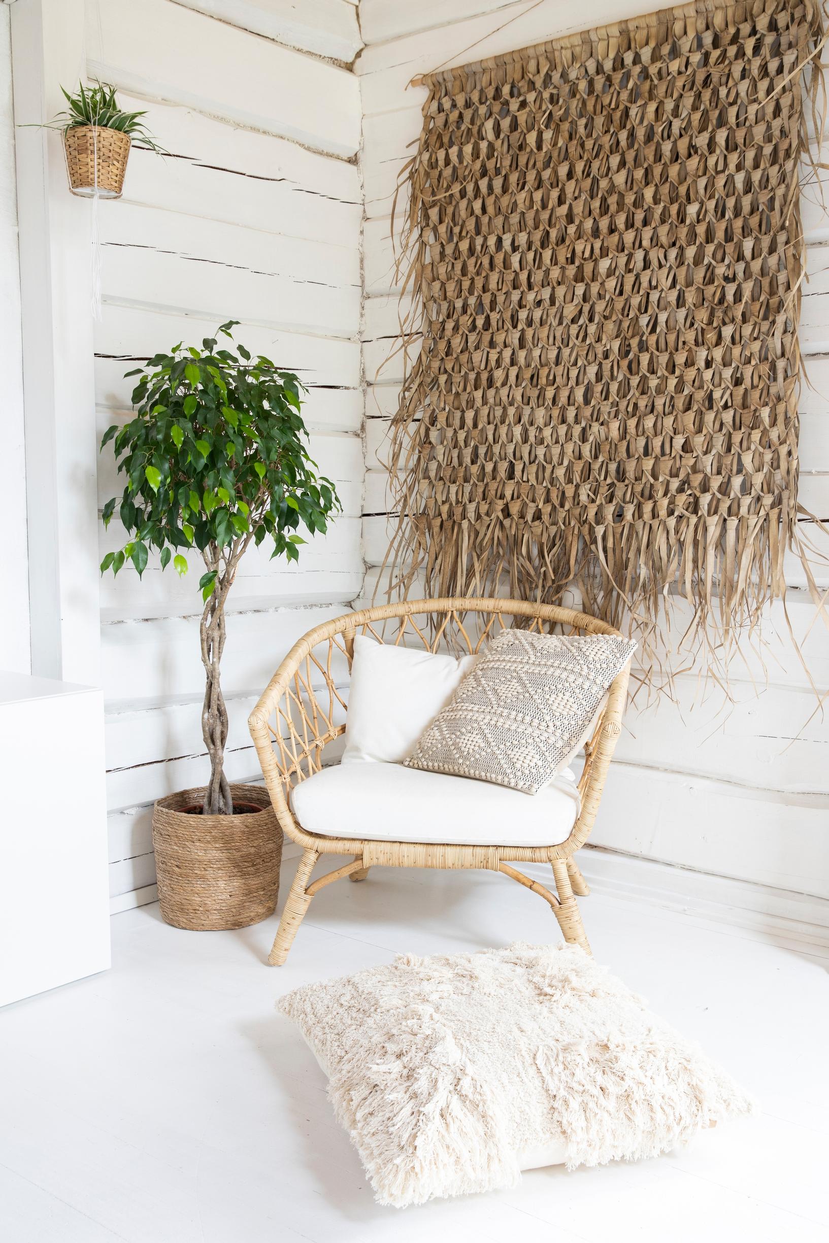 Rakastan puun sävyjä, minusta ne tekevät tunnelmasta rauhallisen. Yleensä valitsen valkoisen vaihtoehdon, jota lämmittävät puun eri sävyt ja rottinki. Paletilleni eivät kuulu punainen ja sininen.