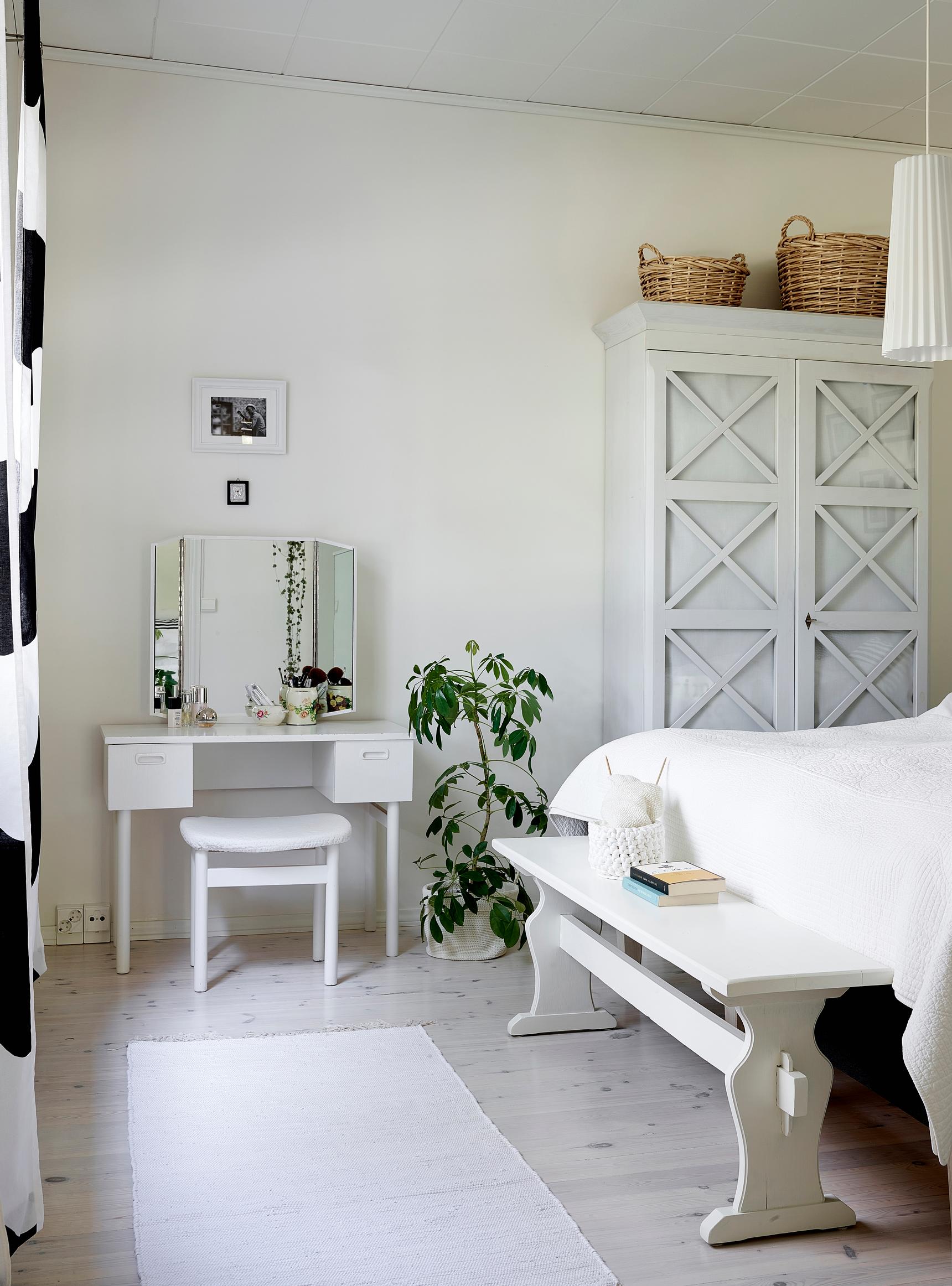 Ehdottomasti sen valoisuus. Halusimme paljon valkoisia seinäpintoja, koska olemme innostuneita taiteesta. Mielestäni taide tulee edukseen vaalealla taustalla. Pidän siitä, että koti on muutenkin yleisilmeeltään vaalea. Pelkään kyllästyväni väreihin enkä tunne ihan mustavalkoistakaan kotia omakseni. Tekstiilit ovat minun juttuni: niillä tuon uutta ilmettä kotiin.