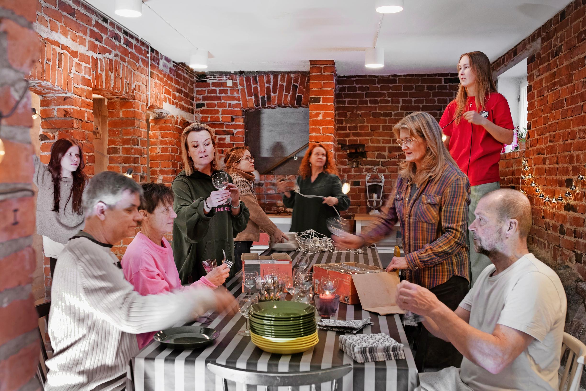 Kutsu illanviettoihin ja saunavuoroille on kaikille avoin, mutta ydinporukaksi yhdeksän asunnon talosta on hitsautunut viiden asunnon väki, Jenni kertoo.