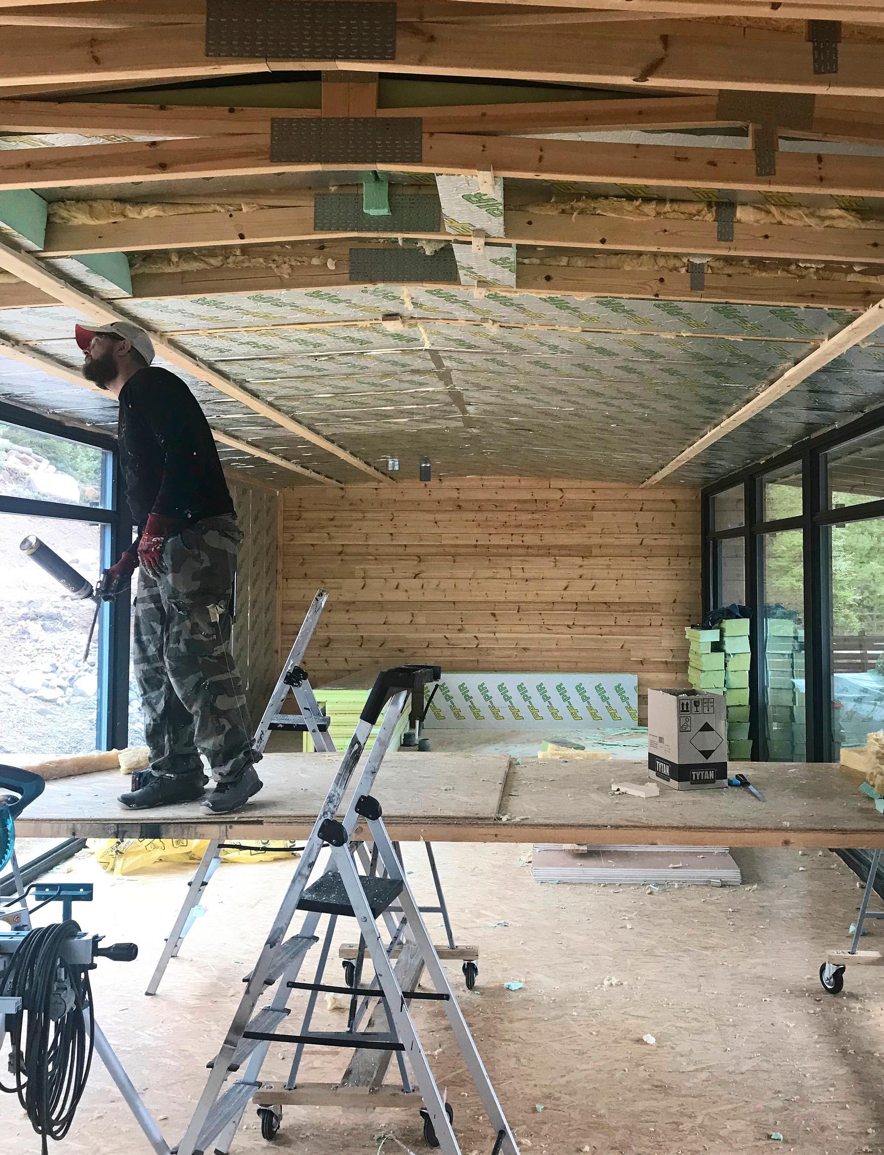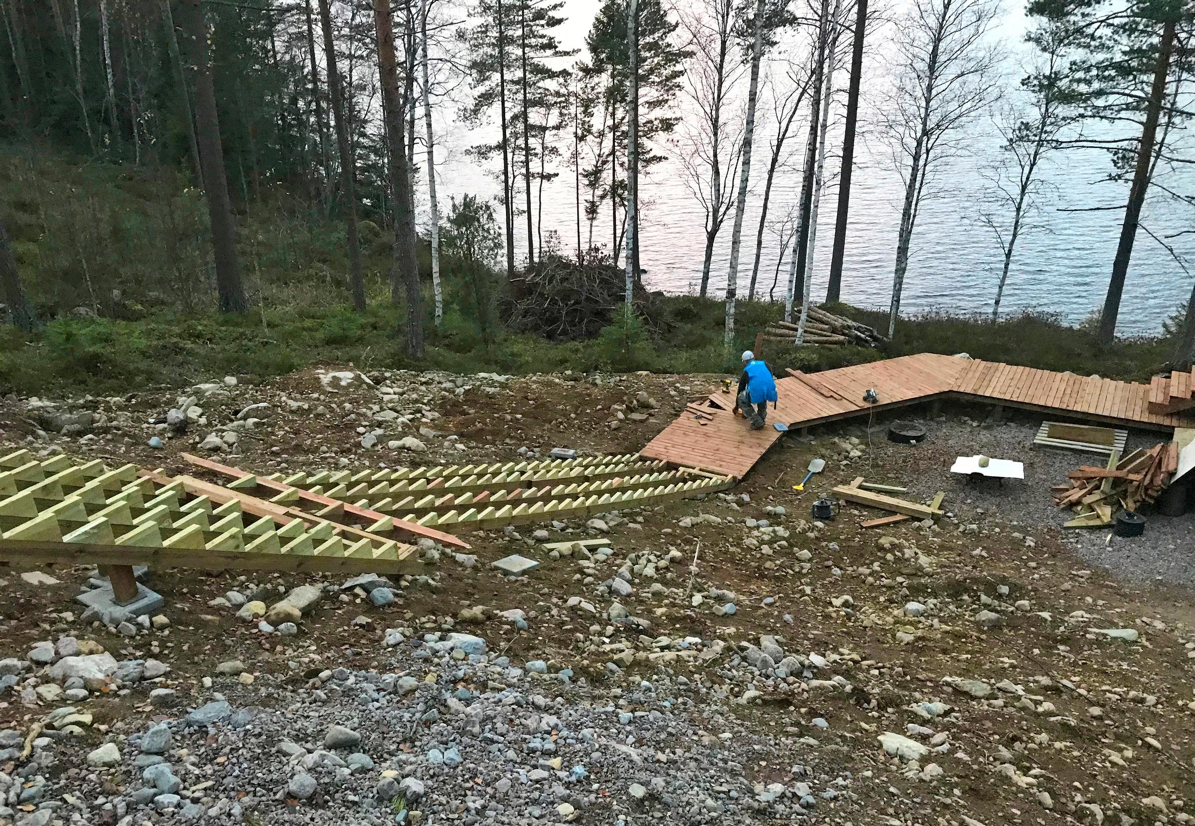Kati ja Eemeli hoitivat itse sisätyöt, rakennusten maalaamisen sekä terassien ja portaiden rakentamisen. Tärkeänä apuna olivat molempien isät.