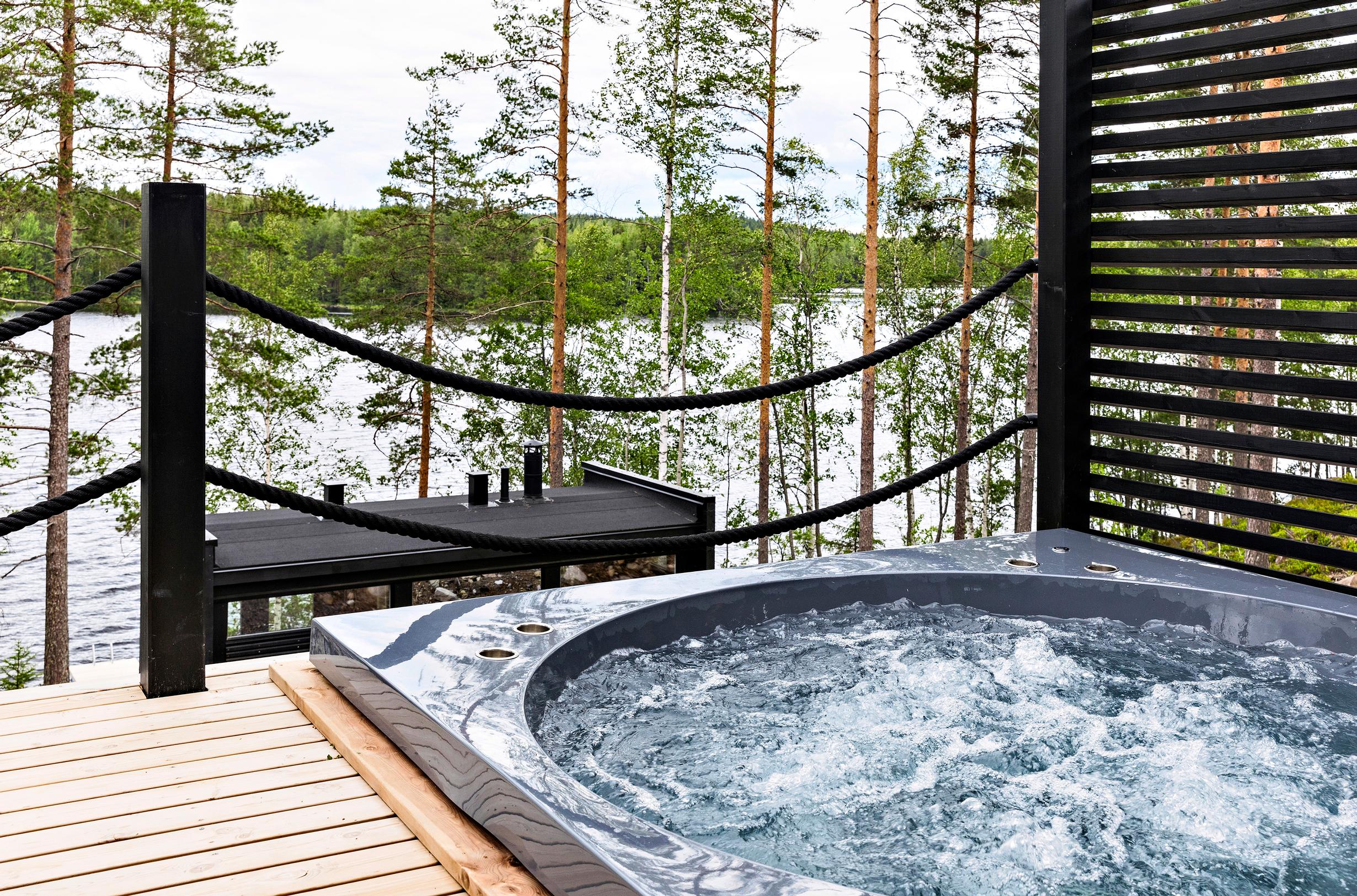 Terassin porealtaan lämmin vesi tyynnyttää mielen kuluneen viikon kiireistä. Kuikat huutelevat – muutoin on hiljaista. Rauhoitetulla järvellä eivät moottoriveneet päristele.