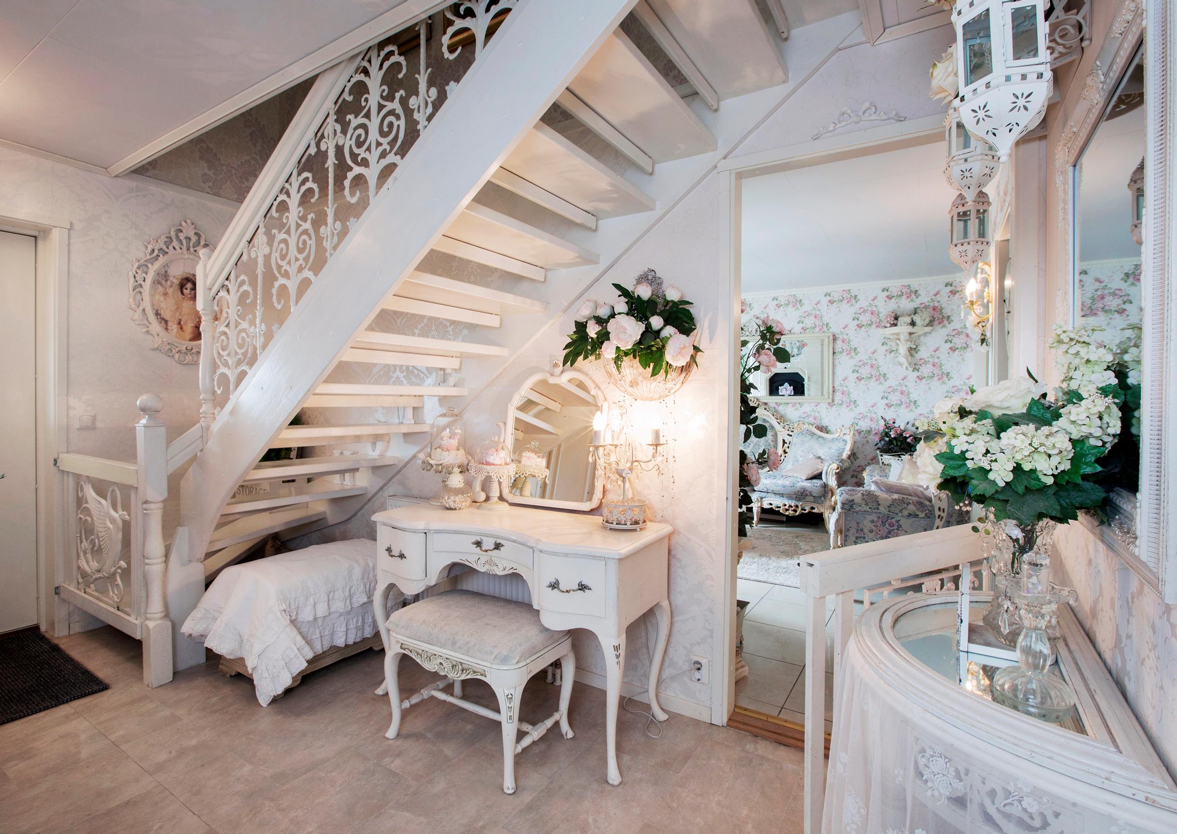 Kukkia, kattokruunuja, suuria peilejä ja romanttisia huonekaluja huoneesta toiseen. Saattaisimme olla ranskalaisessa linnassa Euroopan sydämessä, mutta itse asiassa olemme Älvsby-pakettitalossa Toijalassa Pirkanmaalla. Parvekkeelta aukeaa näkymä naapurin kaurapellolle, ja kilometrin päässä jylisee moottoritie.