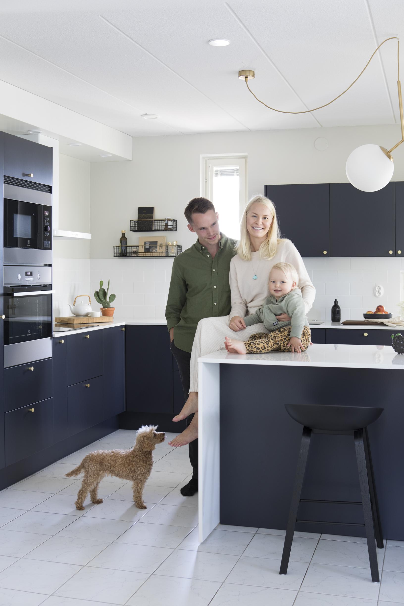 – Emme olleet koskaan ajatelleet hankkivamme tummansinistä keittiötä, mutta sillä sävyllä toteutettu mallikeittiö sykähdytti heti ensi näkemältä. Ja niinhän siinä kävi, että päädyimme hankkimaan tummansinisen keittiön – muualle ei edes tarvinnut mennä katsomaan, Sanni kertoo.